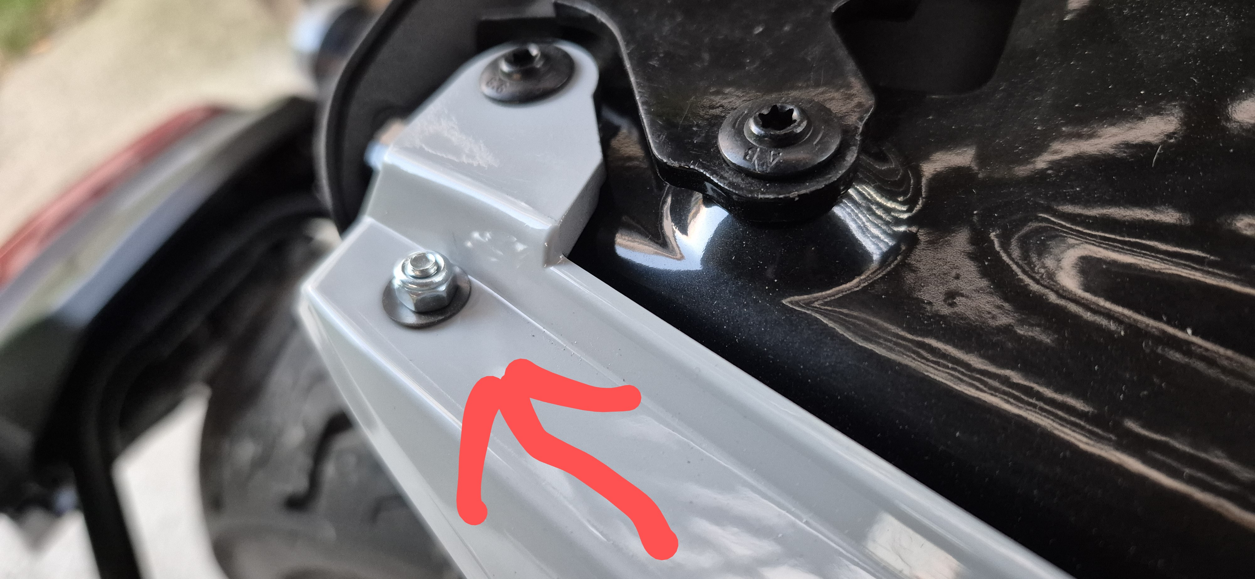 Wo ist denn die Sissibar bei dir befestigt? Und hast du denn Schrauben in den äußeren Löchern des Kotflügels (siehe Markierung am Foto).