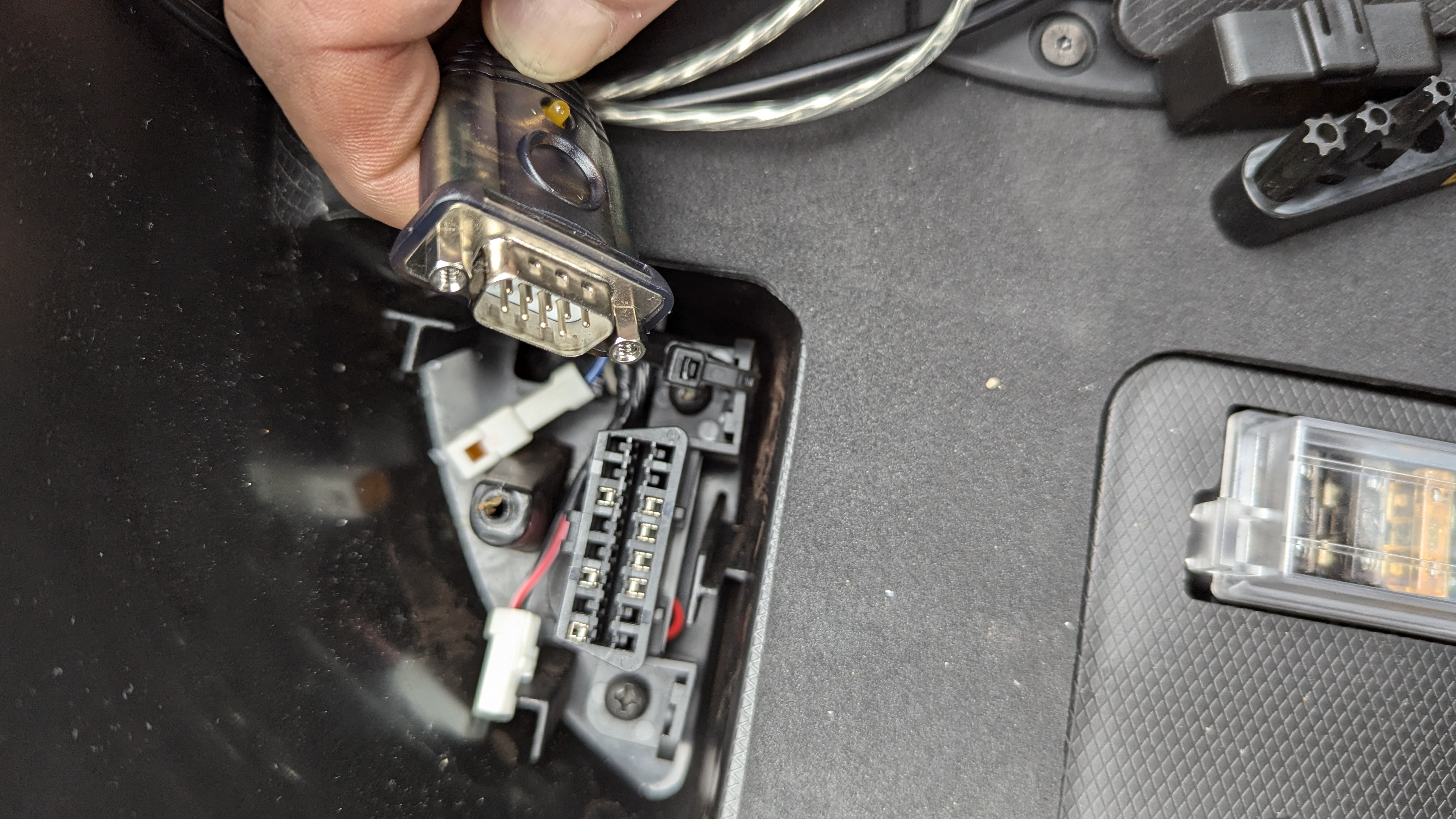 Im gleichen Thread gibt es einen User, der eine abweichende Belegung gepostet hat, die ich aber für falsch halte. Meine funktionert ja.Pfriemler hat geschrieben: Mi 27. Jul 2022, 17:03 Verwendet man so einen gängigen käuflichen Adapter mit D-SUB-9-Stecker, braucht man nur zwei Verbindungen (OBD[4] -> D-SUB-9[5](GND) und OBD[3](Tx) an D-SUB-9 [2]Rx), was zum Mitlesen genügt, ohne dass man versehentlich etwas verstellen könnte. Zum Senden von Befehlen zur Anzeige der programmierten Parameter und deren Anpassung muss man zusätzlich OBD[11](Rx) mit D-SUB-9[3](Tx) verbinden. Auf USB-Seite genügt ein Laptop oder ein OTG-fähiges Smartphone mit einem Terminalprogramm, das auf 115200 baud,8,N,1 eingestellt wird.