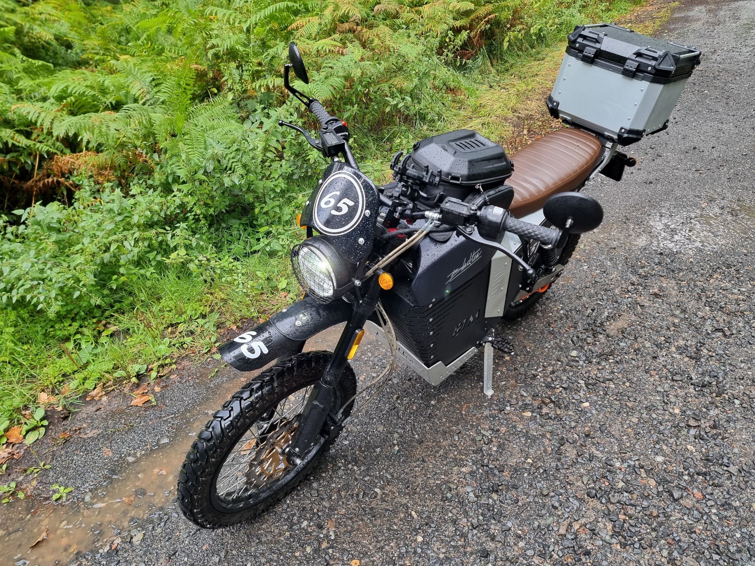 Um das Kurvenverhalten zu testen nehme ich gerne Autobahnab - und auffahrten, weil die sich alle sehr ähnlich sind. Die Wildfire gibt mir genug Vertrauen um mit bis ~70kmh in die Kurve reinzugehen und den Seitenstreifen etwas aus der Nähe zu betrachten. Fühlt sich stabil an. Nachkorrigieren mit der Bremse/Rekuperation bei der gelegentlich eintretenden Selbstüberschätzung soweit auch kein Problem.