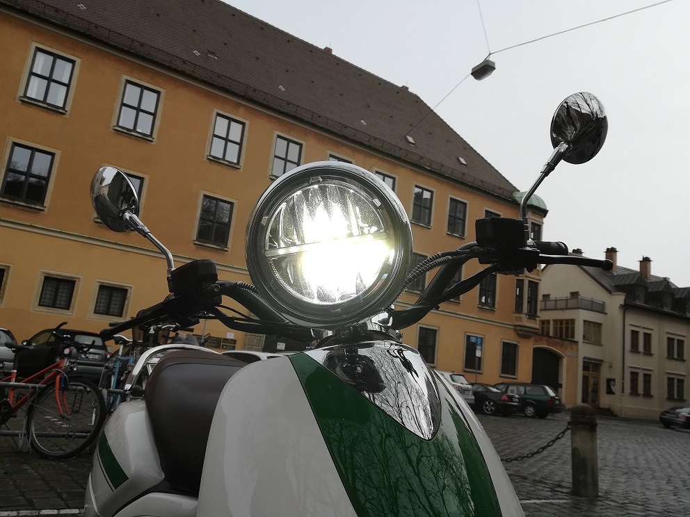 Rücklicht und Kennzeichenbeleuchtung sind Led's. Das Abblendlicht ist typisch chinesisch. Düster. Sehr düster.