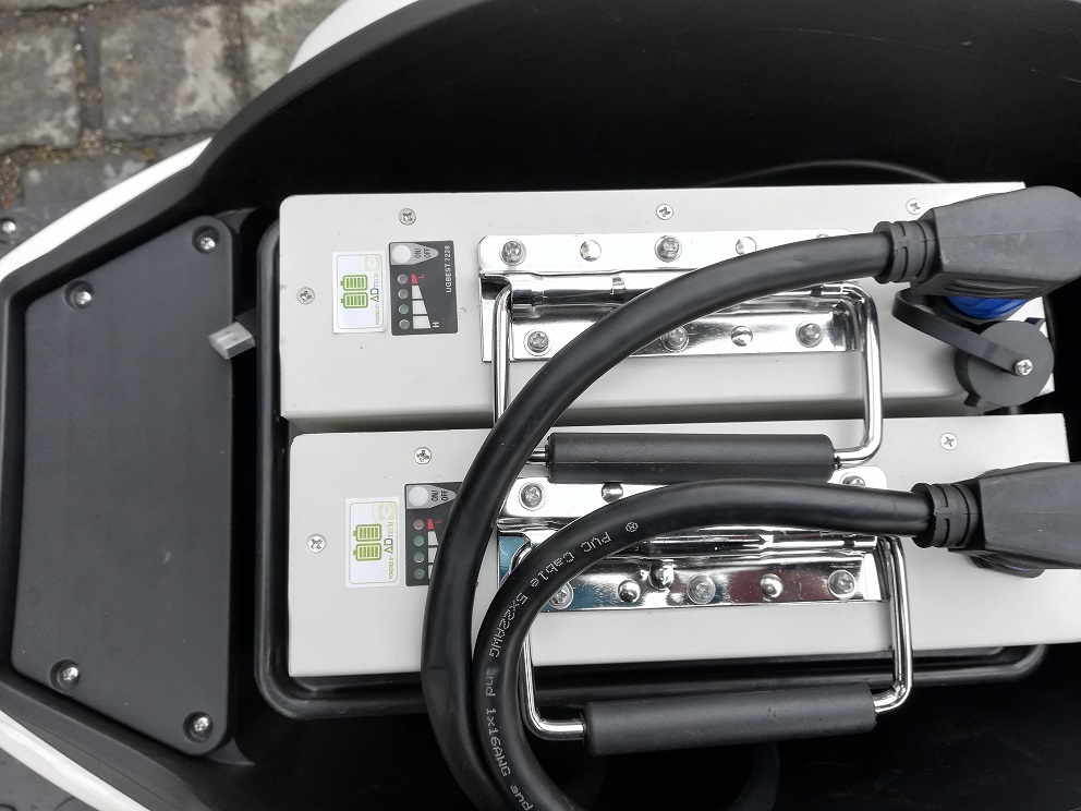 Die beiden Akkus sind mit einem Y-Stecker verbunden, wo man nicht mehr umstecken muss.