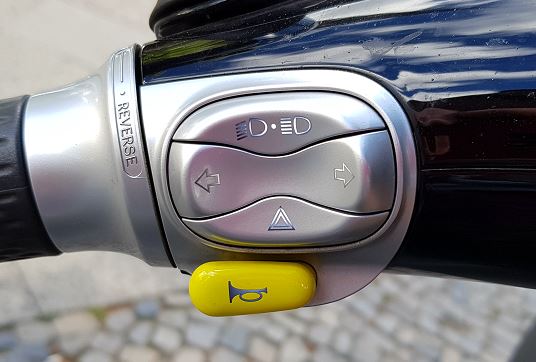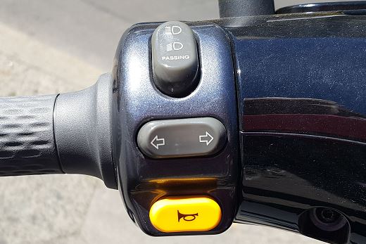 hat unmögliche Blinkertasten, die zu bedienen, falls sich das Blinken nicht von alleine abstellt, sehr filigran ist (und gefährlich werden kann, wenn man während der Fahrt da dauernd rumfummeln muss, dann blinkt es rechts, statt links, dann wieder links, dann beide ... bis die dann endlich aus sind, musste ich schon einmal rechts ranfahren. Die Mitte des Blinkerschalters ist einfach zu schmal!!). Bei Gogoro 2
