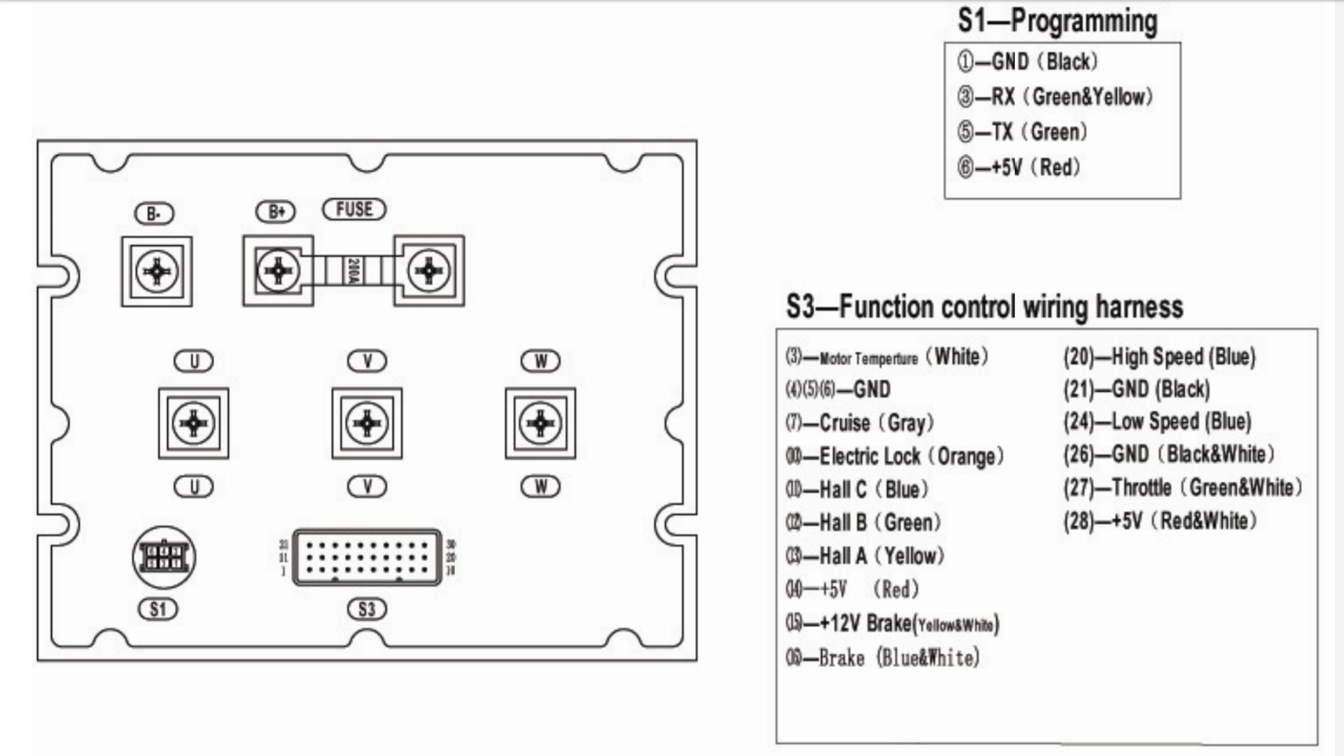 mein unu könnte das bestätigen: Der Controller hat die drei Kabelfarben u=gelb v=grün und w=blau