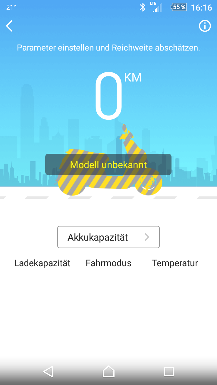 Ich habe einen 2017er N1S, der wird „erkannt“. Nur kann ich keinen passenden Akku auswählen. Zur Wahl stehen nur 20 und 34Ah.Zwurg hat geschrieben: Mo 9. Jul 2018, 16:27 Apropo nicht funktionierende App, habt ihr auch einen "Unbekannten Fehler" wenn ihr auf "Geschätzte Reichweite" geht ?