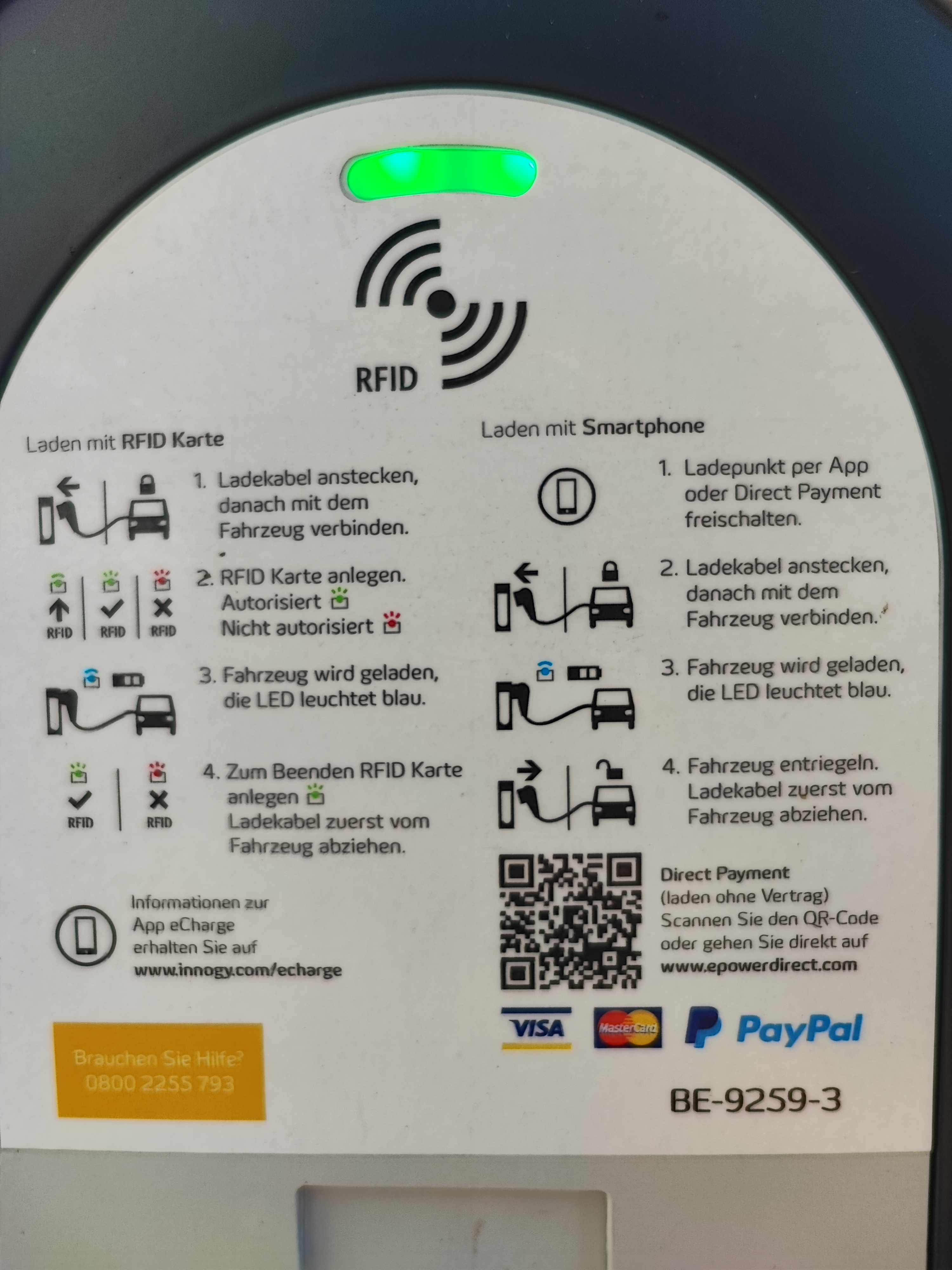 Ich habe Mal ein Bild von der Bedienungsanleitung auf der Säule angehängt.