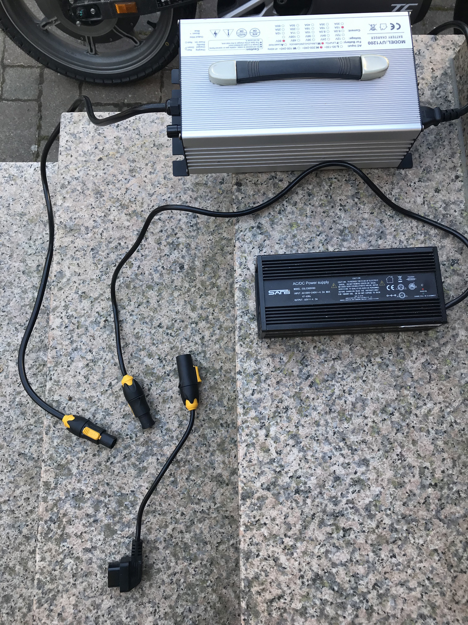 Das Ladegerät habe ich mir konfigurieren lassen mit 70,1 V Ladeschlussspannung (wie das org. auch hat) und den drei Stromstärken. Invest lag bei 200€ plus 40€ Zoll.