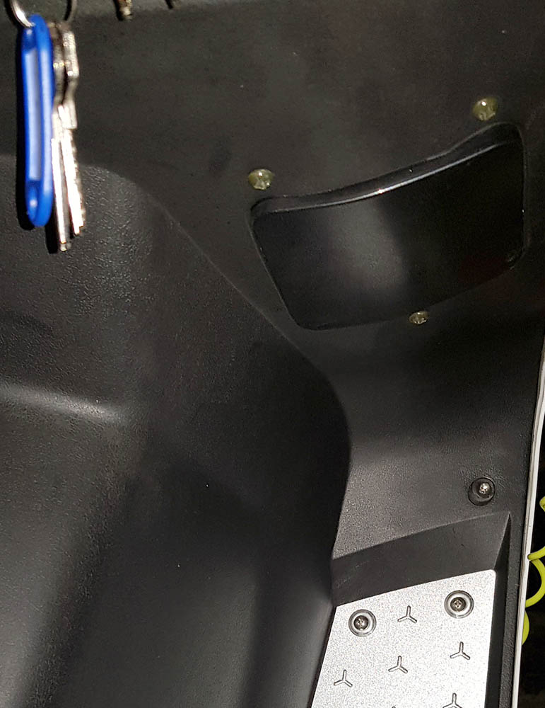 Ausser zum Verstellen der Scheinwerferhöhe habe ich leider jedesmal die ganze Frontverkleidung entfernen müssen, um an die H1 Lampen in den Scheinwerfern zu kommen. Das geht vom Windschild bis unter die Fussabdeckplättchen auf dem Trittboard, um die letzten beiden Schrauben zu entfernen.