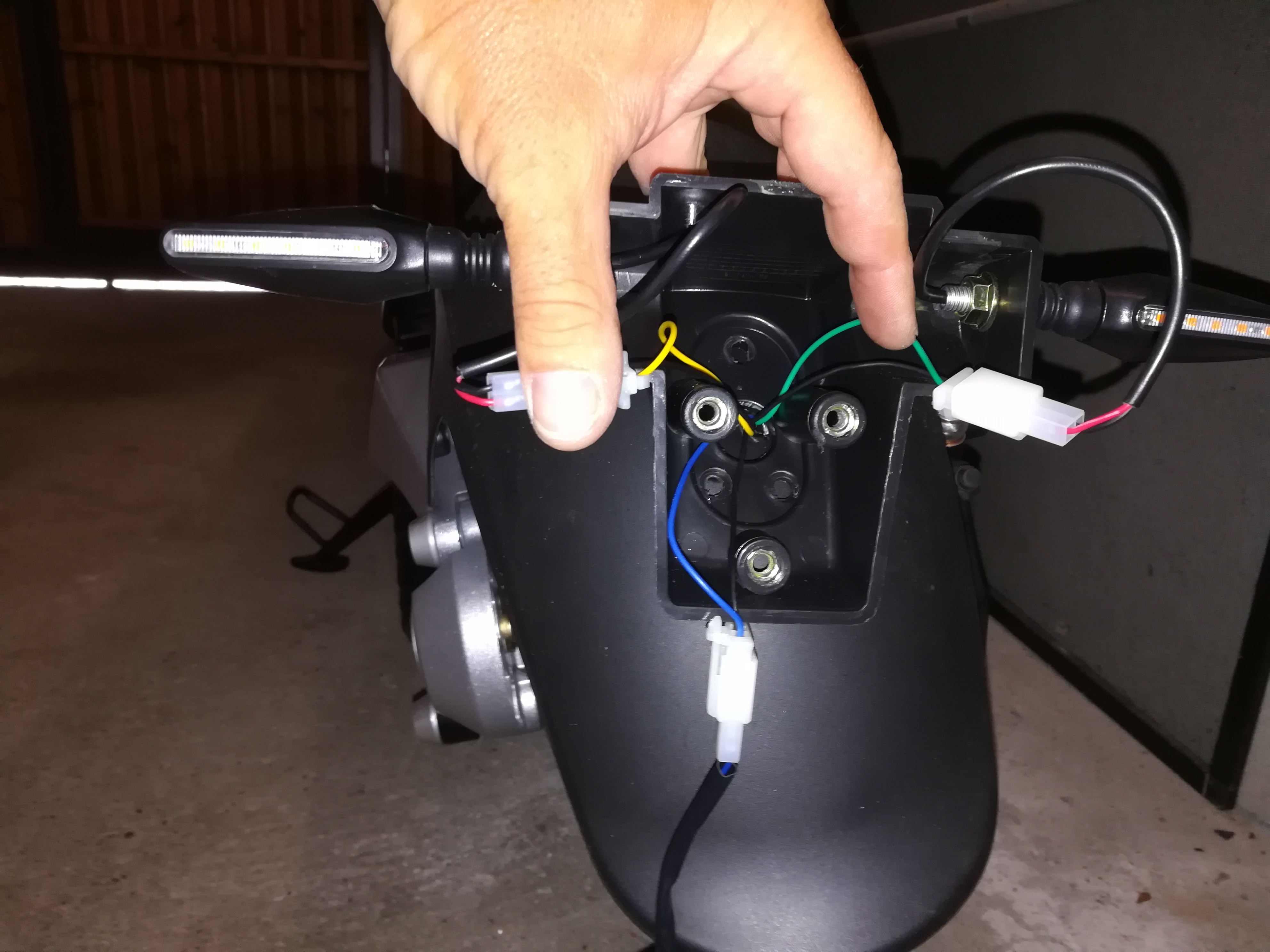 Was aber gut gemacht ist, Kabelverlegung von unten nach Vorne, nach oben hoch richtung Ablagefach, seitlich am Rahmen vorbei und mittig am Sitz bis nach hinten zur Bremslicht ist eine Art vertiefung und führung wie vorgesehen !! Es ist ein loch schon vorhanden ( abgedckt ) was man öffnen muss zum anschrauben der Beleuchtung mit Kennzeichenhalter.