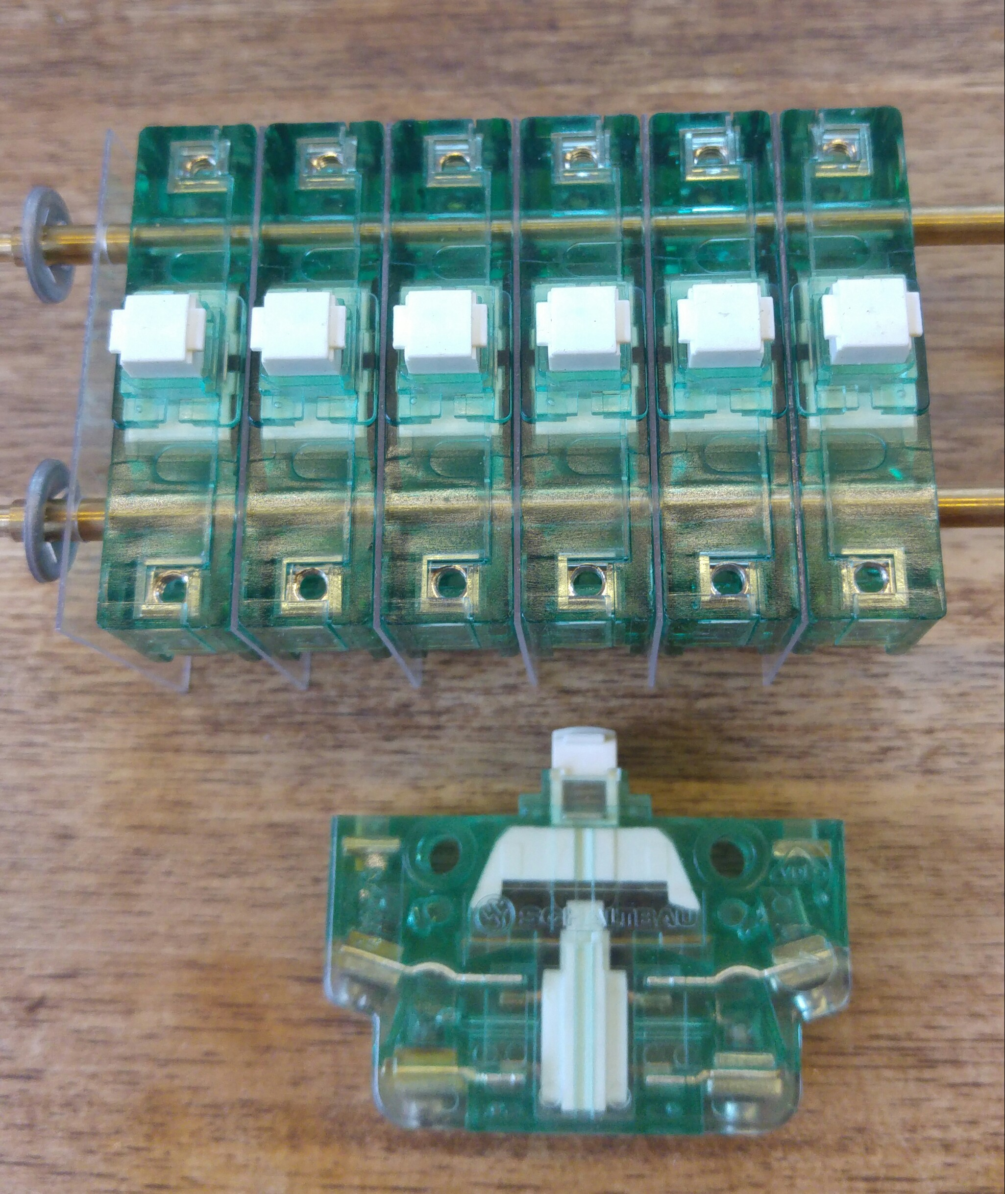 Erst mal n Bild von den Schaltern die ich meine. Davon könntest du 3 nehmen auf der einen Seite bei den Schließern die 3 Motorstromkabel anschließen und auf der anderen Seite alle Schließer verbinden (kurzschließen) oder Widerstände dazwischen klemmen. Die Öffner schaltest du alle in Reihe auch mit dem Kontakt des Bremspedals.
