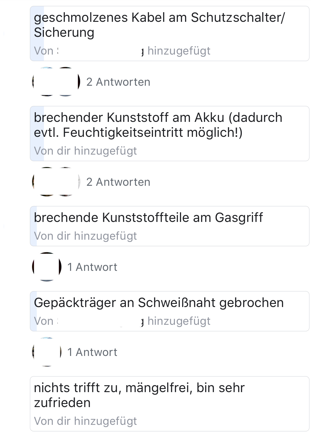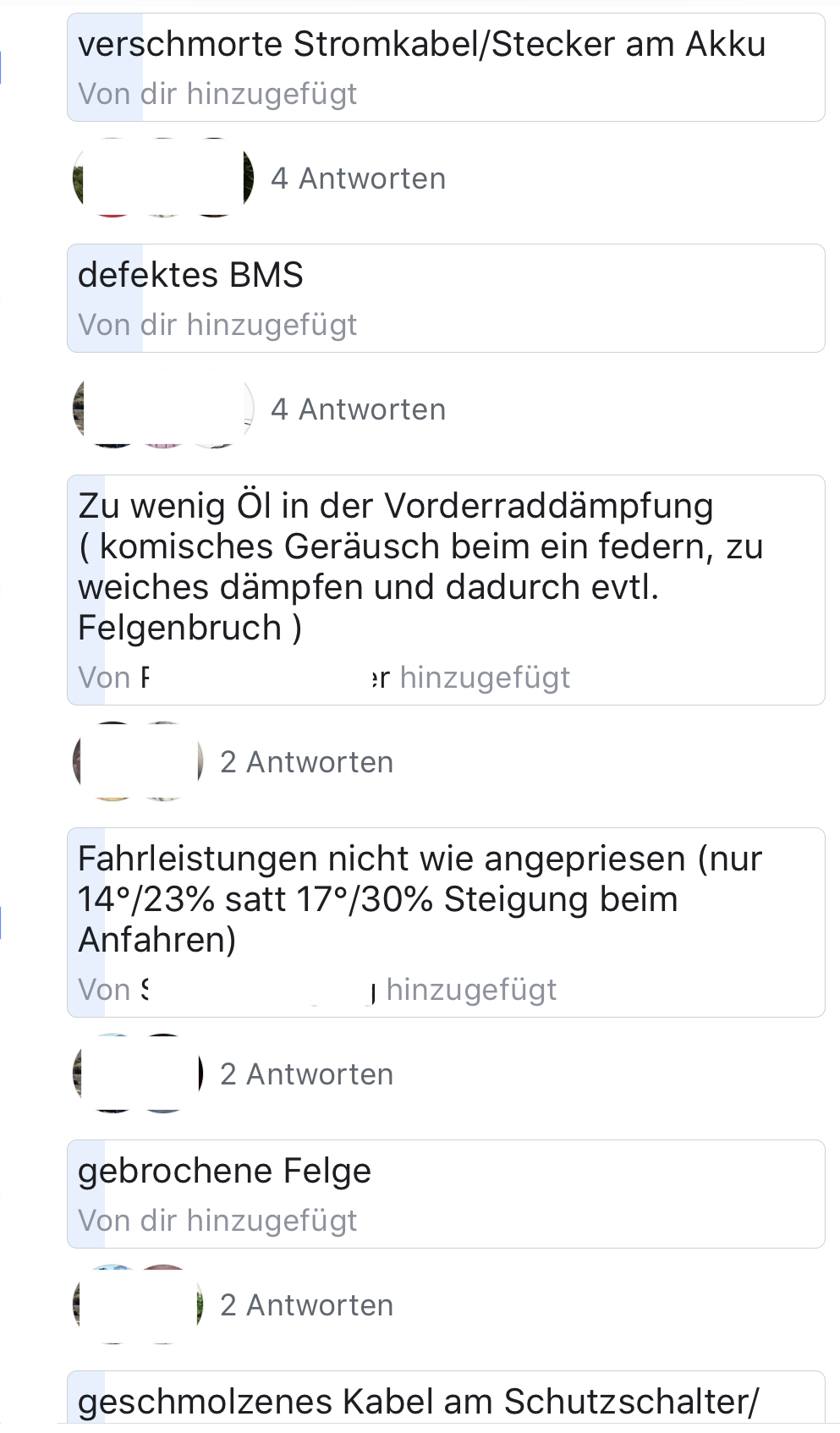 Wir sind hier immer noch bei der Soco ;) und wir reden von "schöngeredeten" Verkäufen. Wenn du also ne Soco verkaufst, bei der der Akku oder BMS defekt, das Kabel am Akku fest-geschmolzen oder die Vorderrad-Felge gebrochen ist und du diesen Mängel verschweigst, wäre ich mir ziemlich sicher, dass jeder Richter dem Käufer Recht geben würde und den Kaufvertrag rückgängig macht. Alle anderen "Mängel" finde ich selbst kaum erwähnenswert.