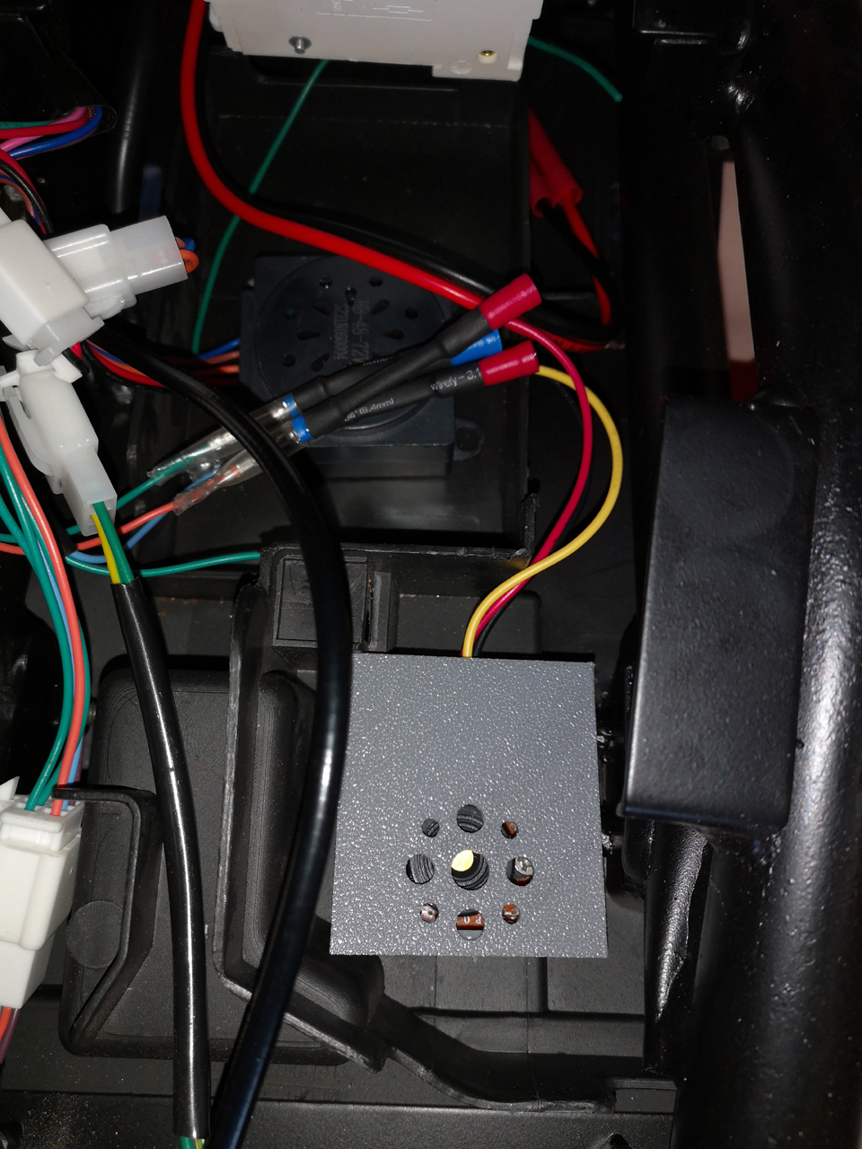 Ich hänge mal ein Bild an (das den Einbau meines Blinker-Piepsers zeigt), da sieht man links die angesprochenen Kabel, über deren Steckverbinder nur jeweils ein kleines Stück Klarsichtschlauch gestülpt ist.