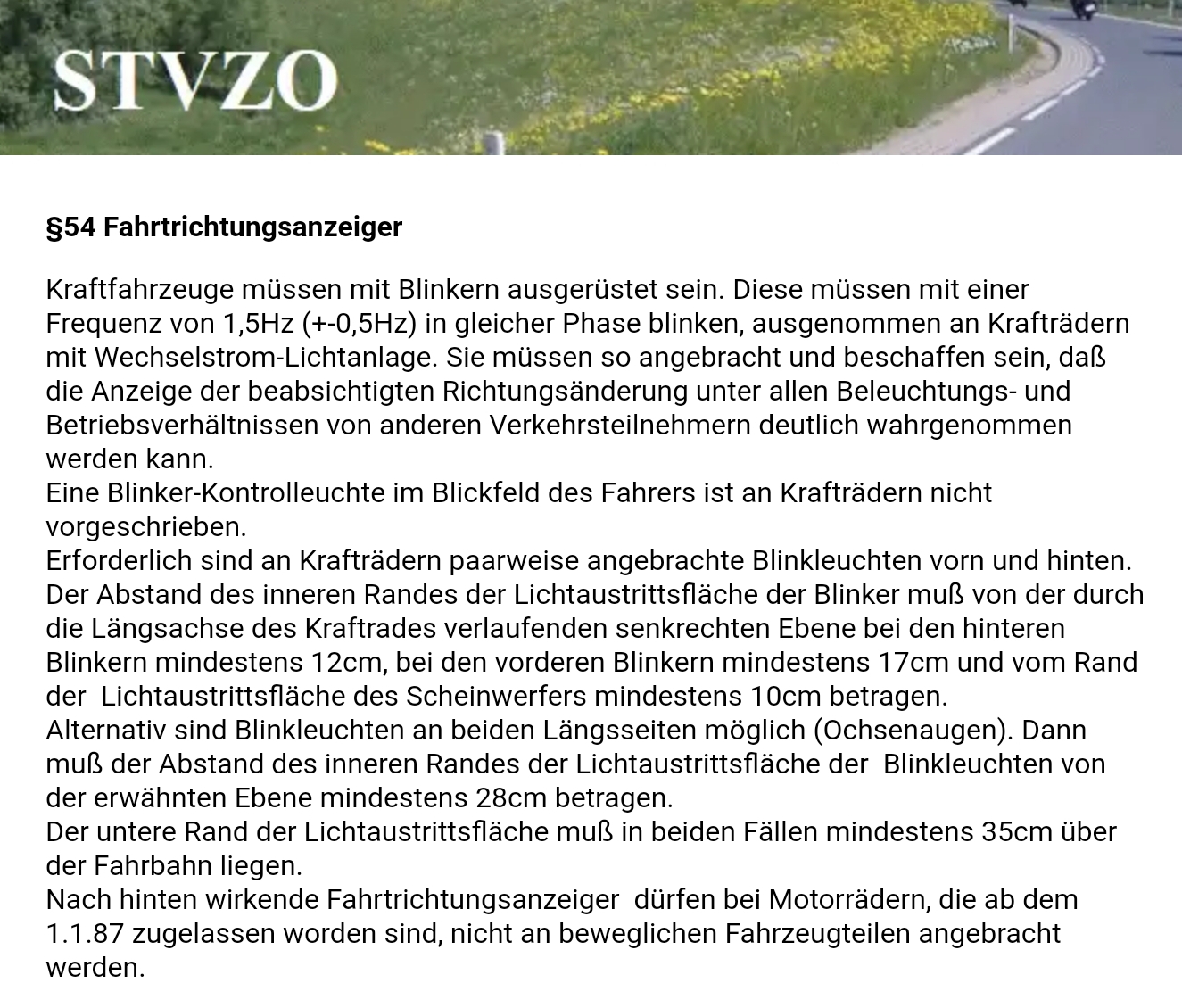 so lautet die Gesetzeslage für Krafträder.