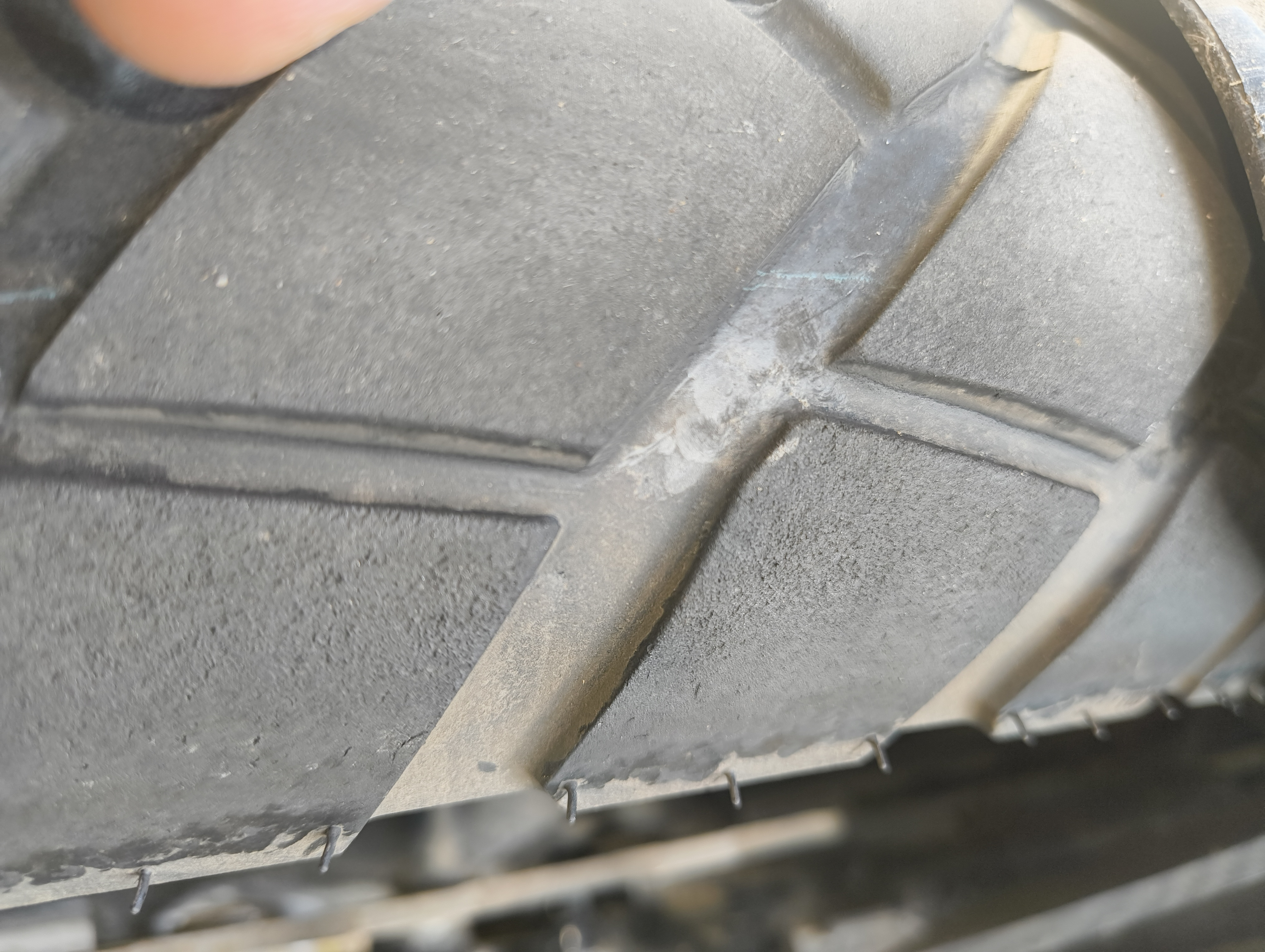 Und der Prüfer hat sich die Reifen recht gründlich angeschaut, da der Hintere auch nicht mehr viel* Profil hat.