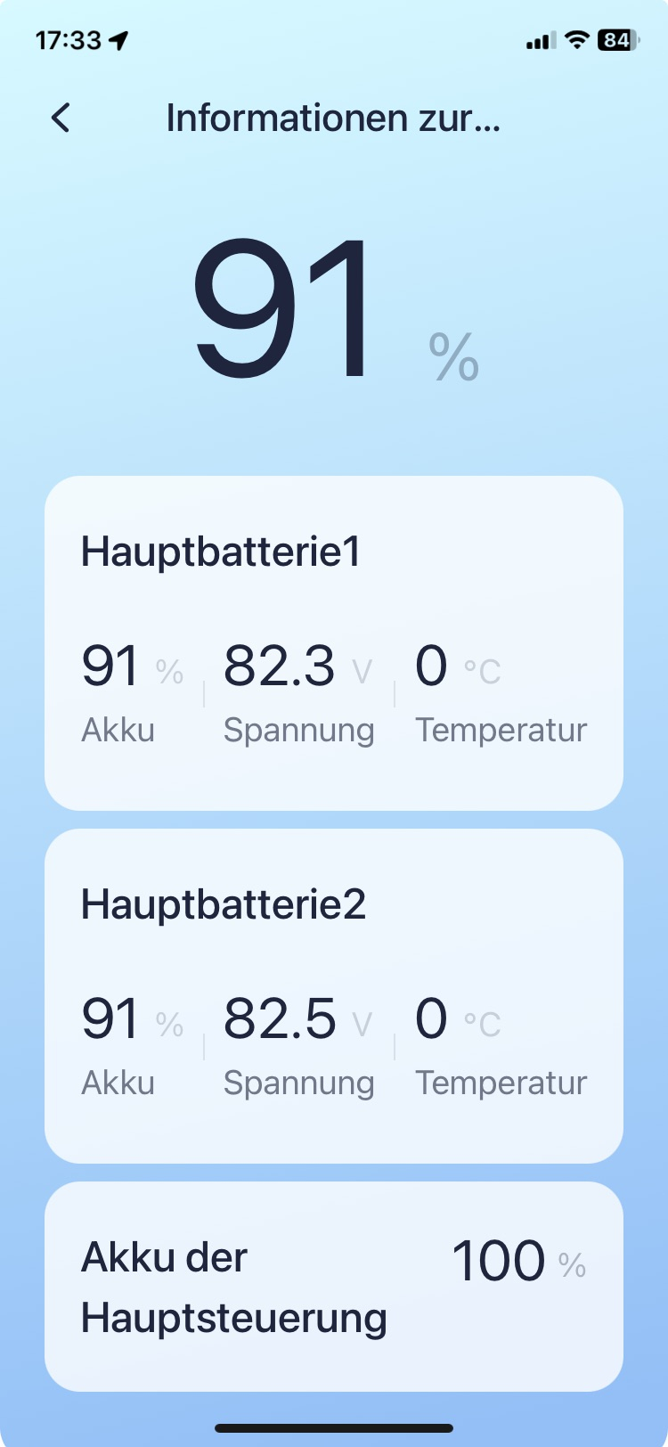Merken sich die Akkus auch eine reduzierte Ladeleistung? Das wäre ja super interessant um mit geringerer Lautstärke in der Wohnung zu laden.hoschi_69 hat geschrieben: Mo 15. Jan 2024, 20:58 Die Anleitung bezieht sich immer nur auf die beiden Haupt Akkus und nicht auf den Steuer Akku