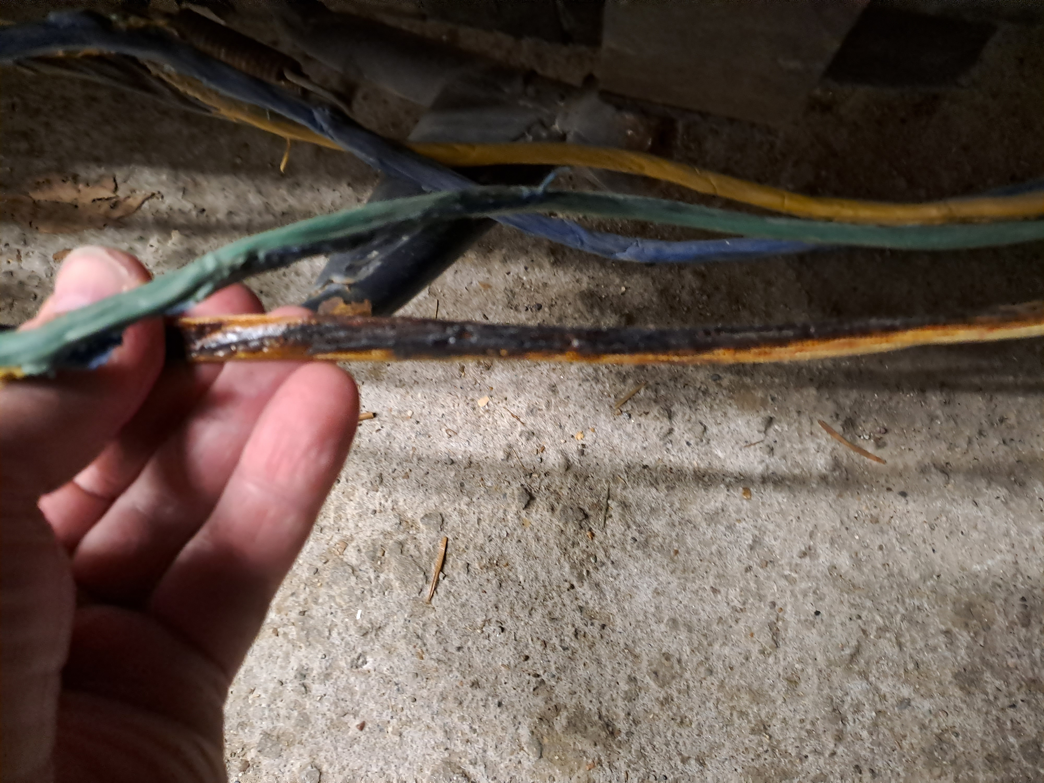 Am Controller waren die Leitungen jederzeit noch anfassbar und direkt am Motor auch, der Motor selbst war auch noch deutlich im grünen Bereich, aber an der Schwinge entlang haben sich die drei Phasen verschweißt und direkt unter einem Befestigungs-Kabelbinder kurzgeschlossen. Da scheint wohl die Isolierung bereits geschädigt gewesen zu sein.