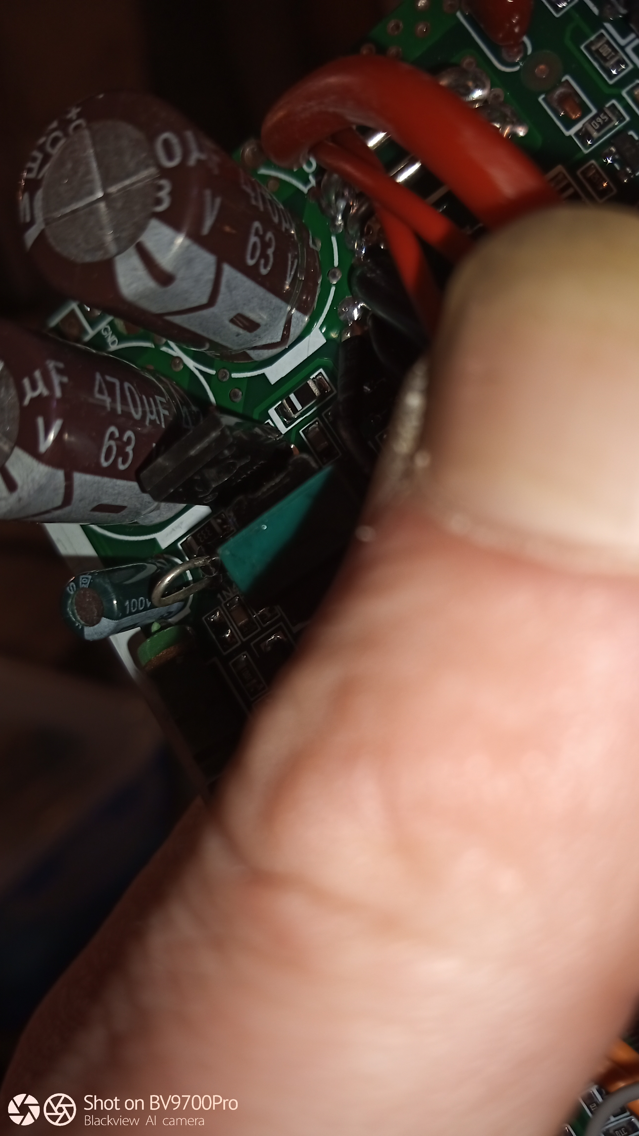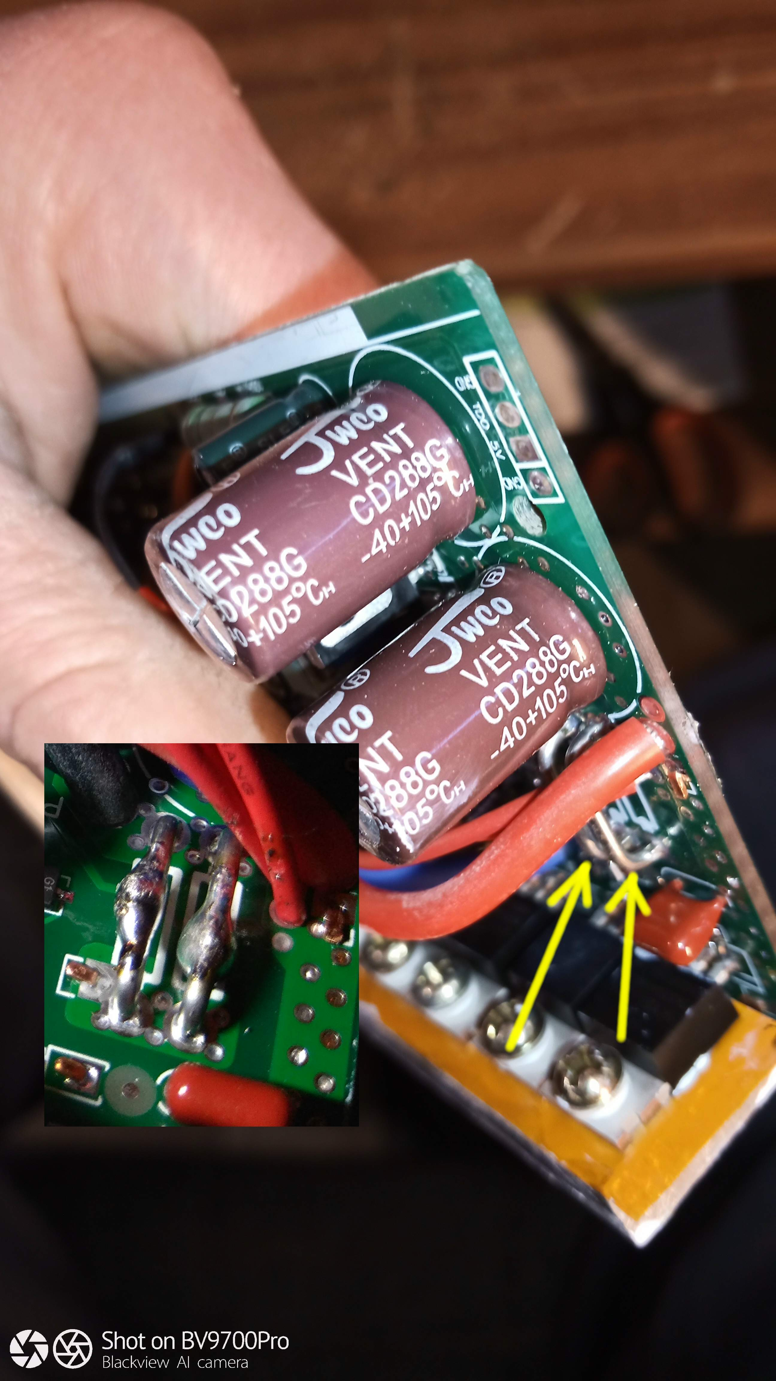 so, hier ist mal dein foto. ich hab dir dort bei den beiden drahtbrücken zwei pfeile dran gemacht und in das foto eingefügt wie die drahtbrücken so ungefähr nach dem lötzinn auflöten aussehen sollten. das kannst du schon mal machen wenn du einen lötkolben hast und dir das zutraust. dann kannst du mal einen fahrtest machen und berichten was es gebracht hat. ob er stärker anzieht, ob es was bei der endgeschwindigkeit gebracht hat.