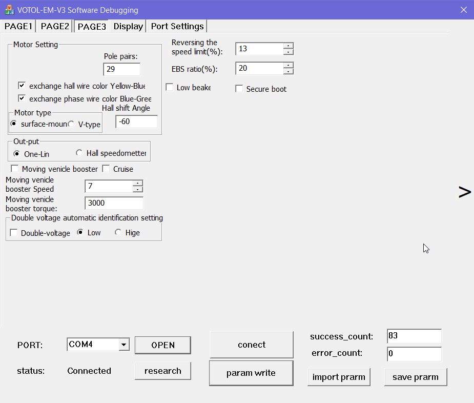 Re: Seat Mo mit Votol EM150/2 die Einstellungen