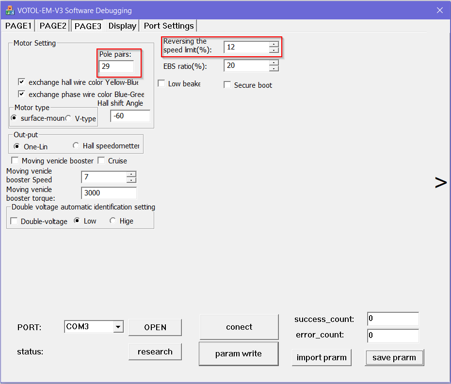 Ich bin zwar mit einem Sevcon unterwegs, also etwas OT, aber wir haben den gleichen Motor. Ich habe die Profile auch entsprechend angepasst. Leider macht der Sevcon einiges anders, deshalb lässt sich die Polpaar-Zahl nicht einfach anpassen um eine genaue Geschwindigkeits-Anzeige zu haben.