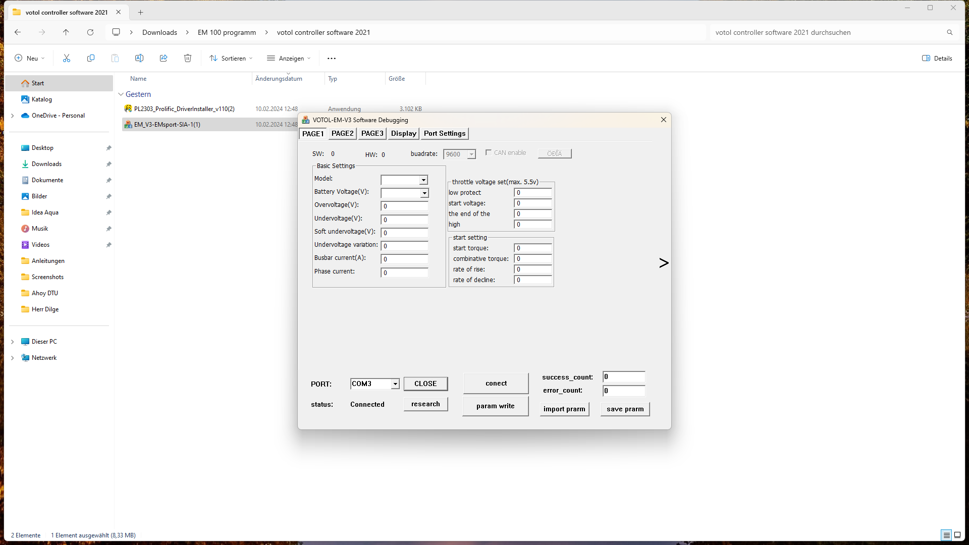 Habe das USB Kabel angeschlossen, Programm hat den Port erkannt, und ist connectet