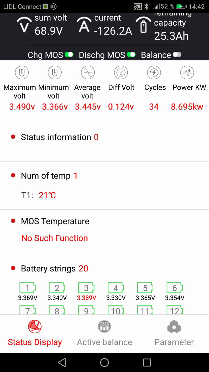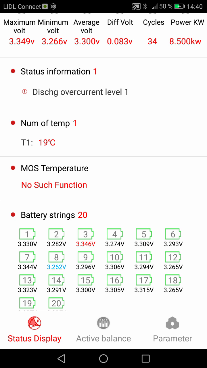 Die Zelldrift finde ich bei 3,3V unter Last auch etwas zu hoch. Bei mir liegt das bei 3,3V und 400A Strom noch unter 60mV.