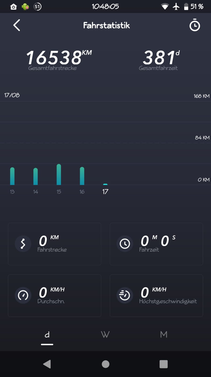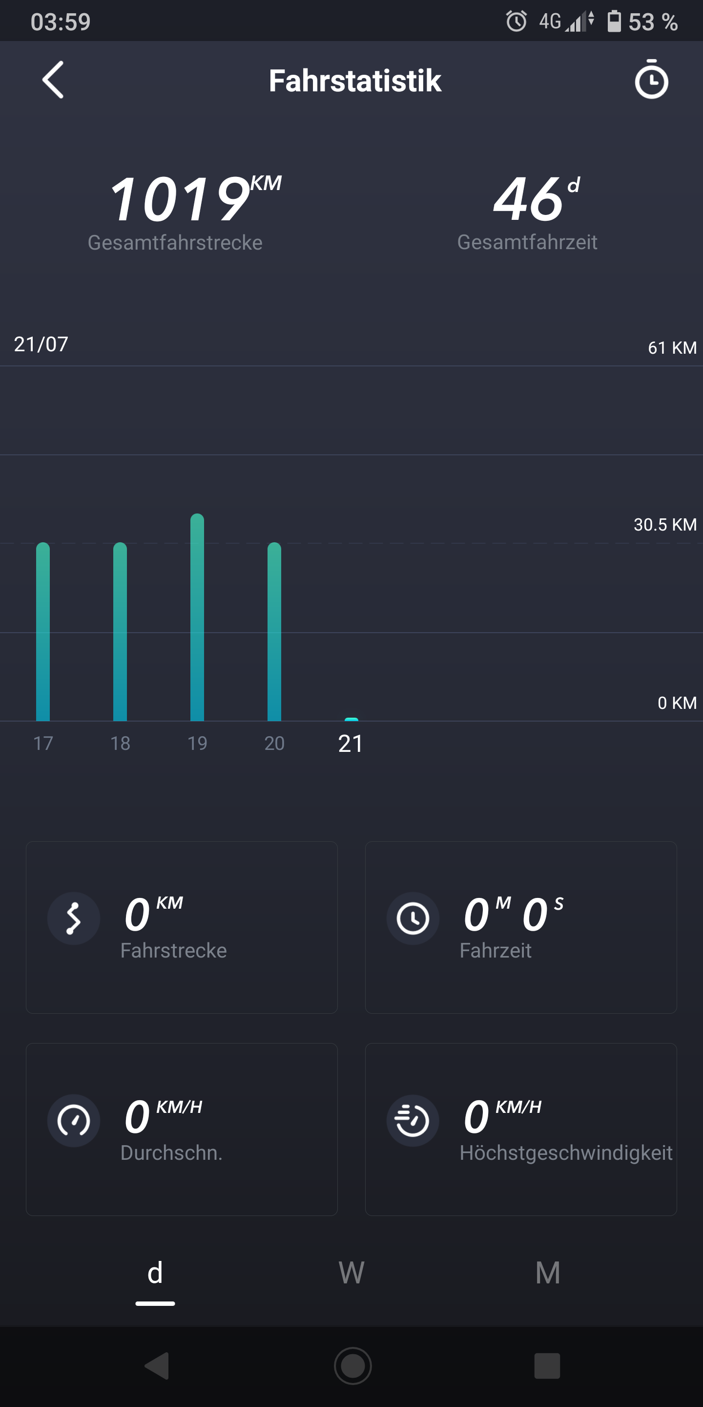 die 7 Tage sind die Tage seit der letzten Anbindung des Rollers an das Benutzerkonto. die km sind aber die Gesamtkilometer des Rollers. Das kann in dem Zeitraum sein, muss es aber nicht.
