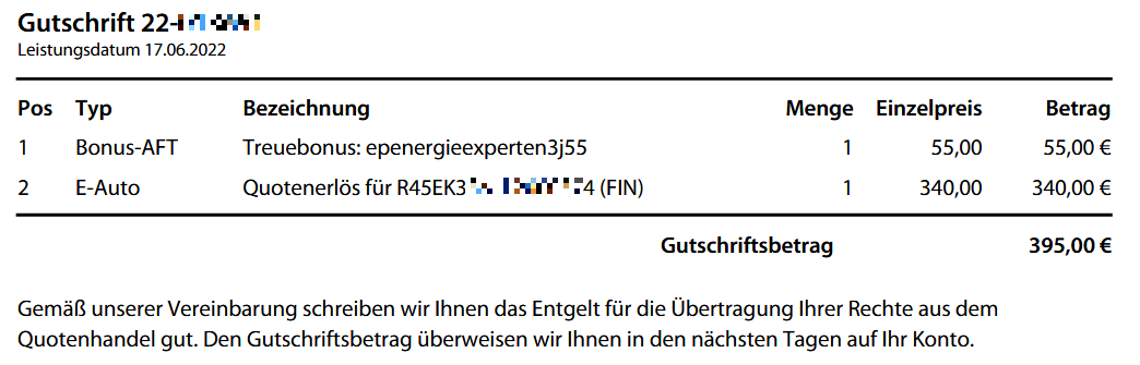 Ich habe jetzt auch meine Quote von emobia.de erhalten - mehr als erwartet ...redstromerbaron hat geschrieben: Mi 30. Mär 2022, 15:31[...] ich bin gespannt, wann die Bestätigung + das Geld kommtredstromerbaron hat geschrieben: Sa 12. Feb 2022, 13:54 [...] habe ich heute meinen EK3 bei emobia.de registriert. [...] Ich lasse mich überraschen und werde hier berichten, wie das ausgeht.![]()