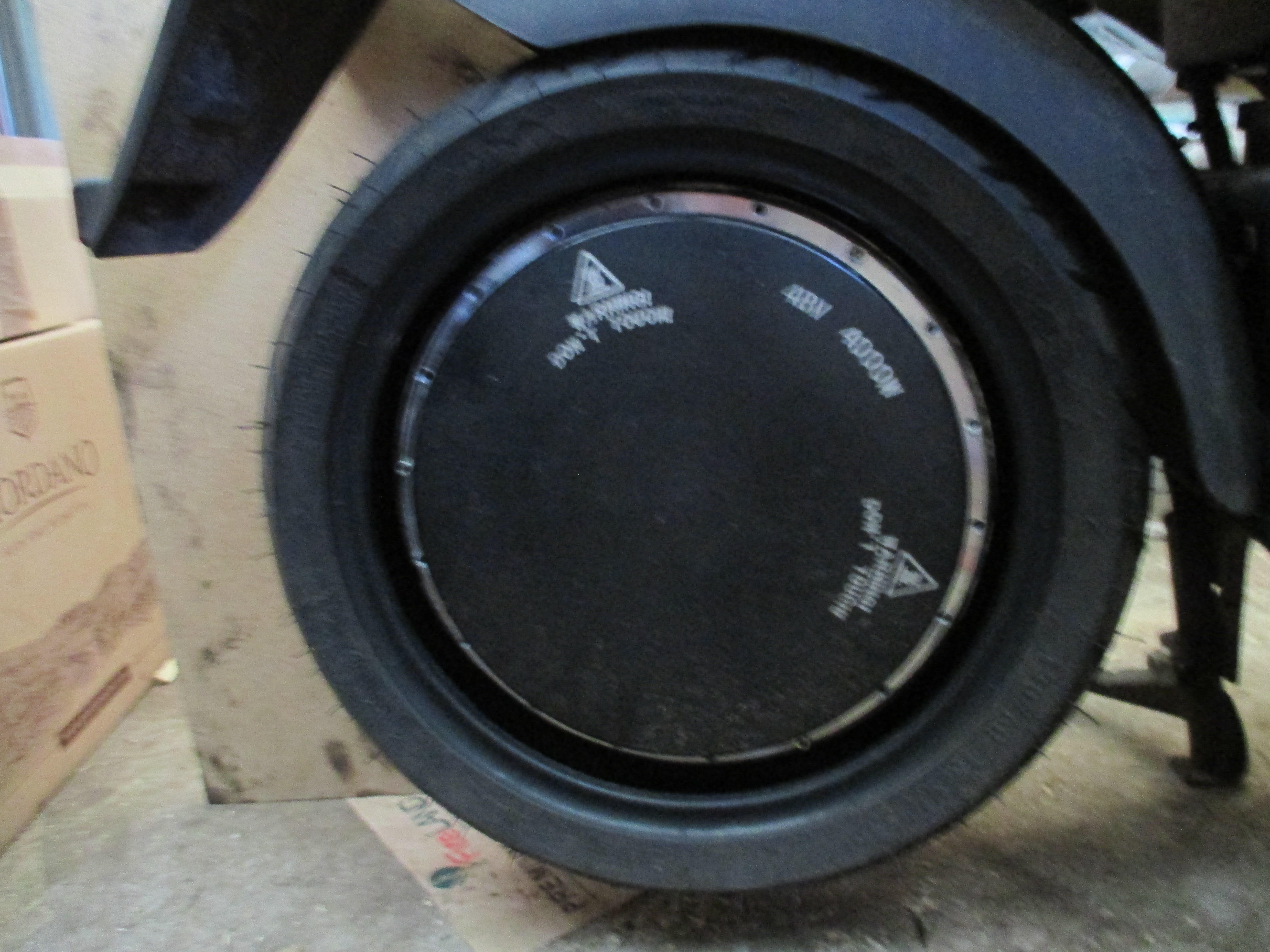 Reifen gestern geflickt und den Schlauch vorsichtig eingelegt, geschoben. Das Ventil muß mittig zwischen 2 Gewinden liegen, sonst paßt später der Felgenring nicht. Dieser hat 3 große Löcher und 15 Löcher für M5 Schrauben. Die Schrauben habe ich mit einem Steckschüssel handfest angezogen. Sollten Gewinde im Motor, Aluminium Legierung, beschädigt werden, ist der Motor unbrauchbar.