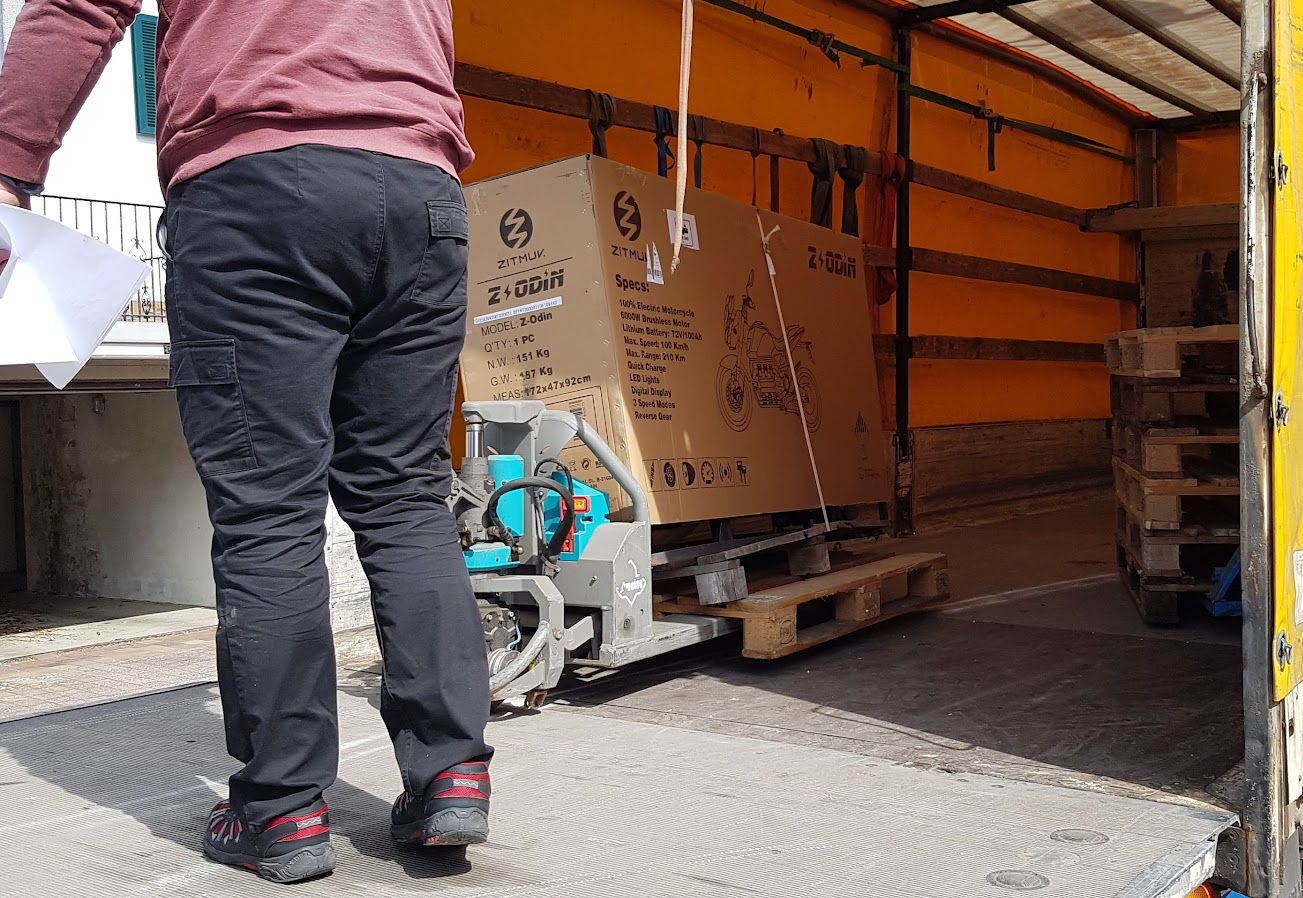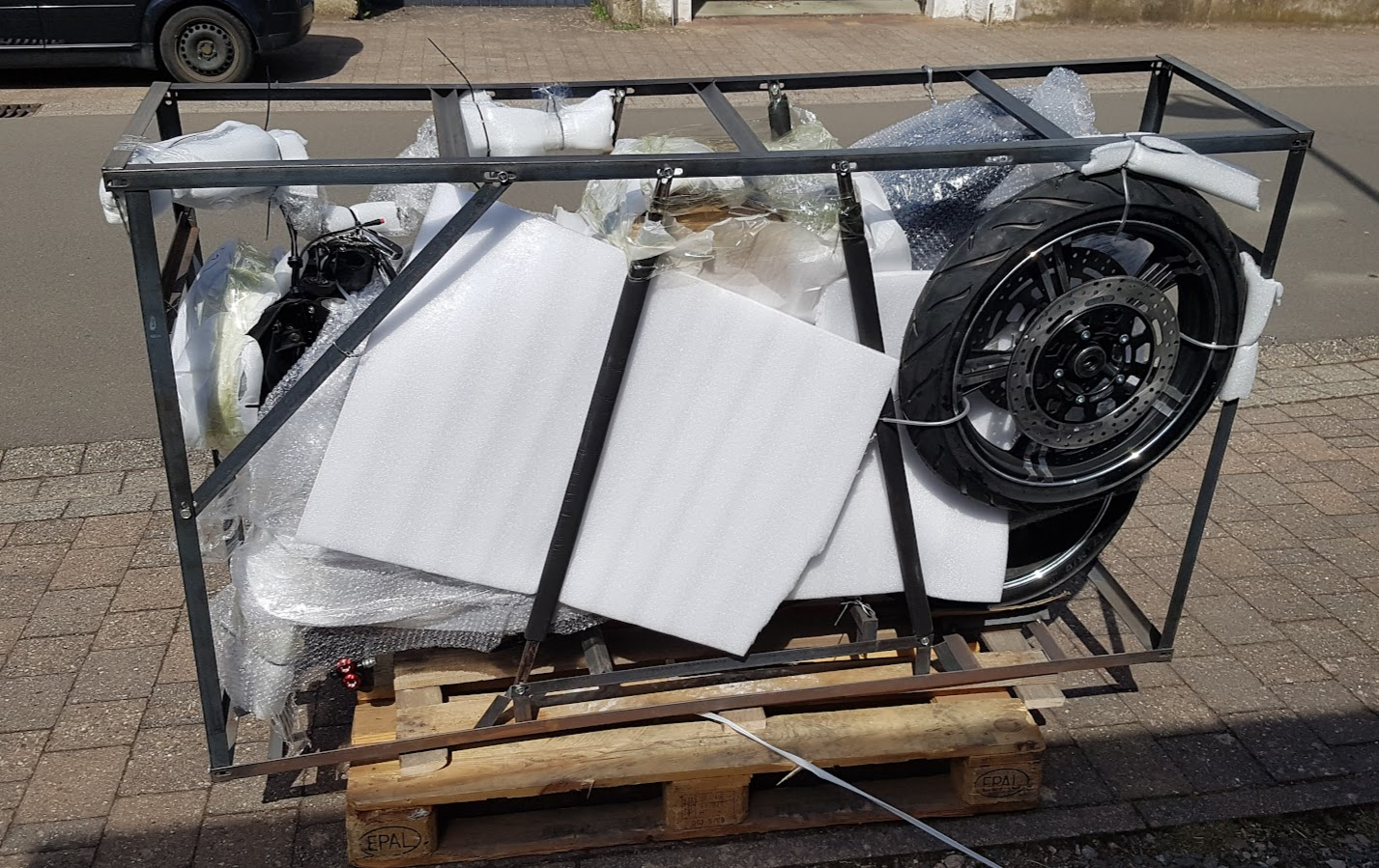 So, also meine Maschine ist heute(nach längerem Warten) eingetroffen,- zwar nicht im angekündigten Zeitfenster,-aber immerhin. Soweit nach erstem auspacken alles unversehrt , wenn auch die Einwegpallette nicht stand hielt ( Spedition hatte eine zusätzlich Europalette unten drunter gefügt) . Nicht ganz einfach mit dem Handling. Das "Teil ist schon recht schwer. In den nächsten Tagen werde ich mich an den Zusammenbau machen. Hier Bilder wie die Maschine im angelieferten Zustand aussieht .