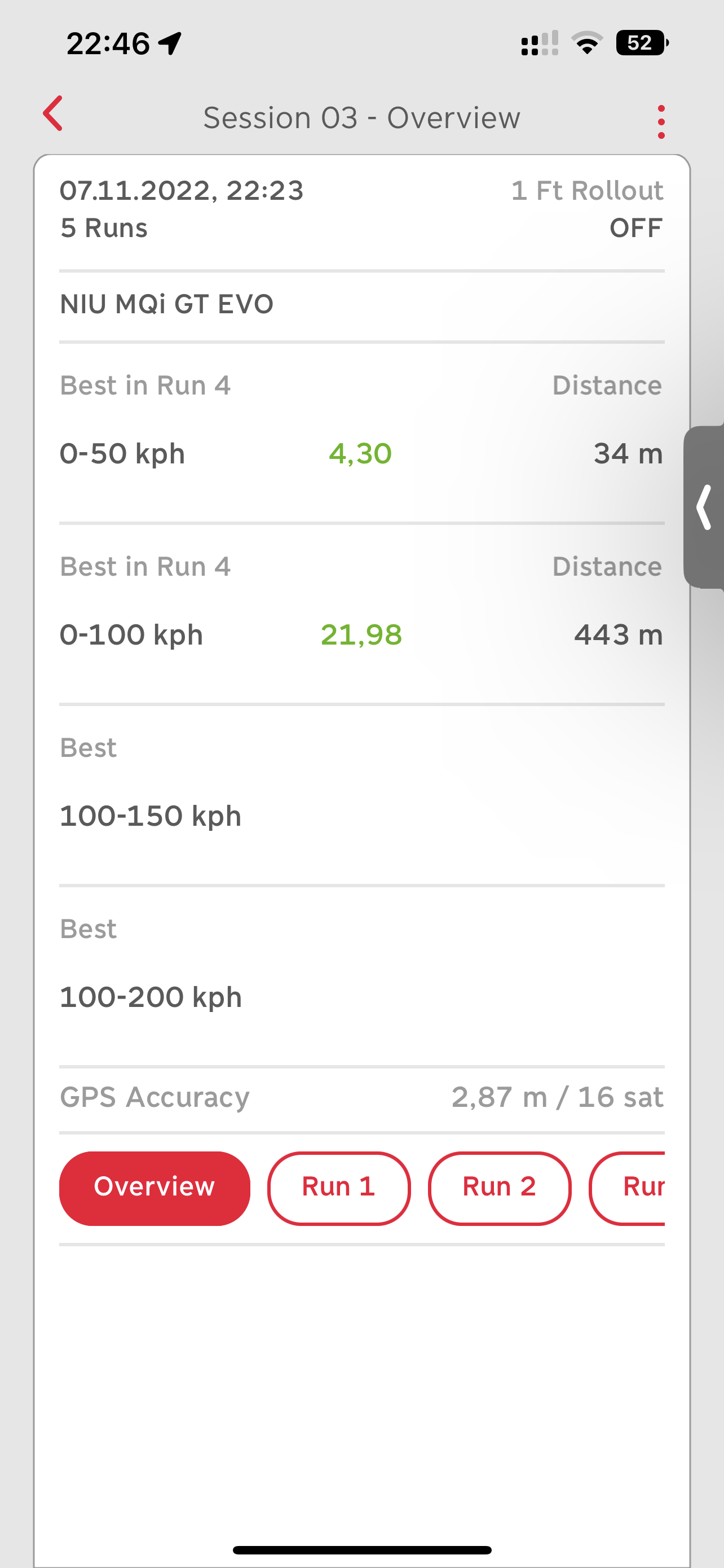 Ich habe ihn zuvor ne ganze Weile stehen lassen aber weder Probleme mit der 12V Batterie noch mit den Hauptbatterien. Entladung ca 2-4% die Woche. Es gab nur einmal einen unschönen Zwischenfall wo mir NIU über Nacht ein Zwangsupdate verpasst hat und dadurch die Haupt sowie die 12V Batterie komplett entladen war. Seit diesem Zwischenfall klemme ich aber regelmäßig die Hauptbatterien ab. Habe eben weil ich Abenteuerlust habe die Akkus voll geladen und bin nochmal komplett über die Bahn. Bis 46% volle Leistung im Sport. Danach musste ich abbrechen da meine Chefin gerufen hat ich solle nach Hause 🥹chrisboy hat geschrieben: Mo 7. Nov 2022, 22:42Wie lange bist Du davor nicht mit dem Roller gefahren? Scheinbar gibt es da tatsächlich eine Häufung dieses Fehlers bei etwas längerer Standzeit.Stivikivi hat geschrieben: Mo 7. Nov 2022, 17:27 Heute bei Fahrt mit Sport und halb vollen Akkus blinkende ready Taste und Fehler 130