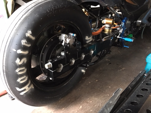 Dann kommt ein 245/40-18 Autoreifen (Slick) drauf.