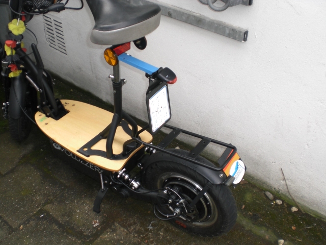 Das Kennzeichen könnte doch jetzt hinten an den Gepäckträger?