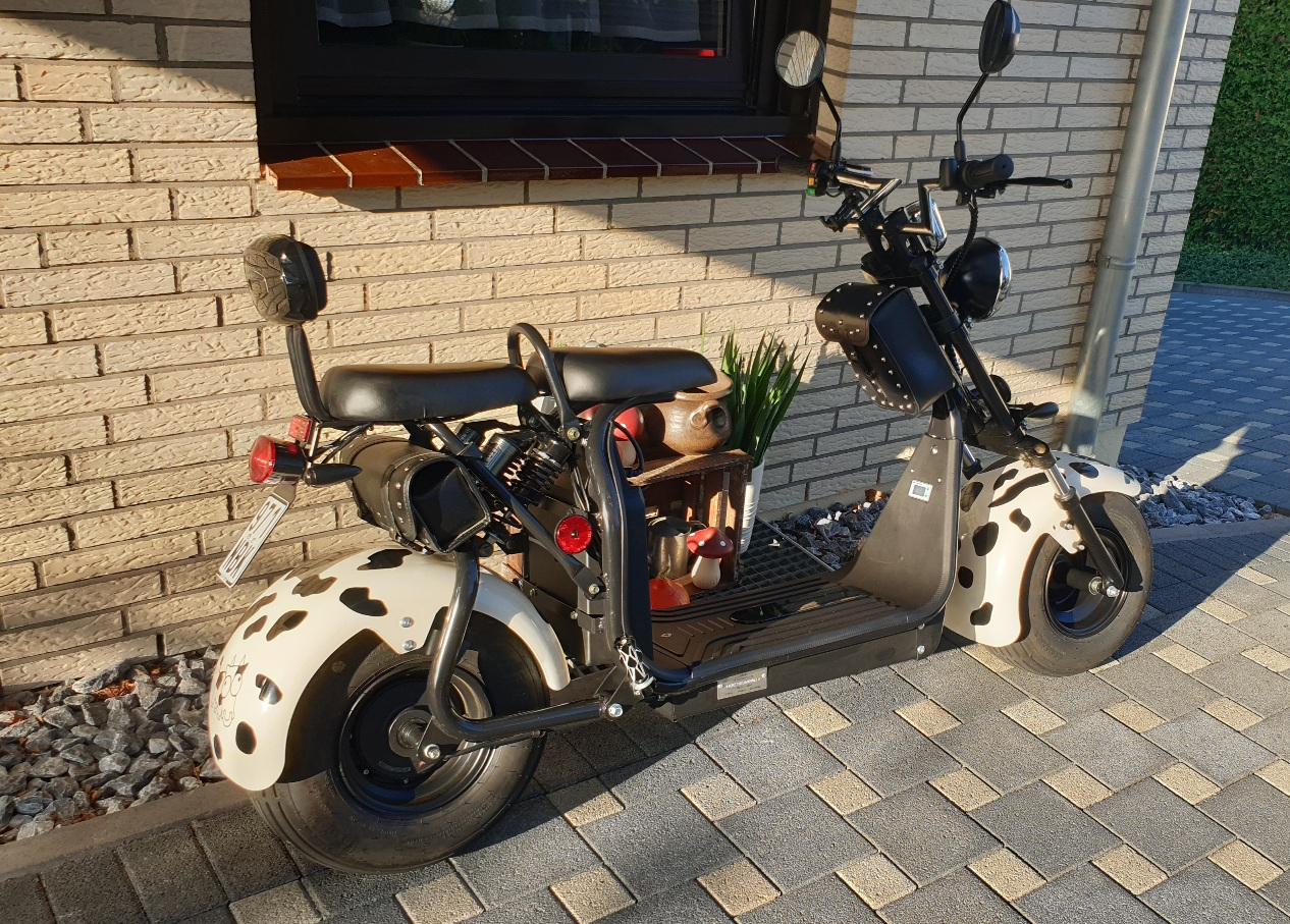 Mein Name ist Andre und ich habe meiner Frau letzte Woche einen Harley two Escooter von der Firma Miweba zum Geburtstag geschenkt.