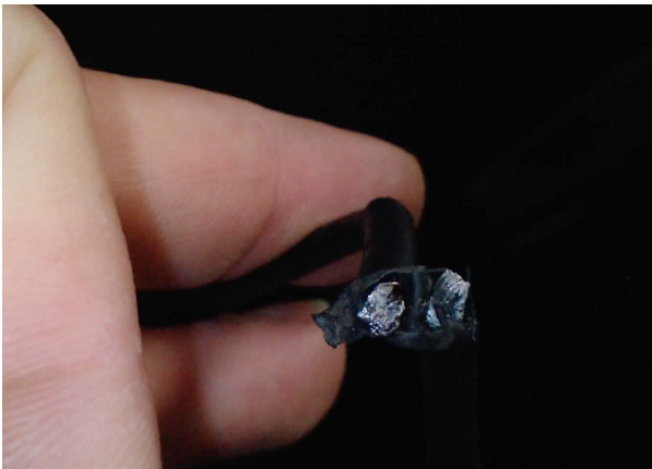 Das Kabel wurde nur noch durch den Schrumpfschlauch zusammen gehalten und war auch vorher nur geklebt und nicht gelötet!