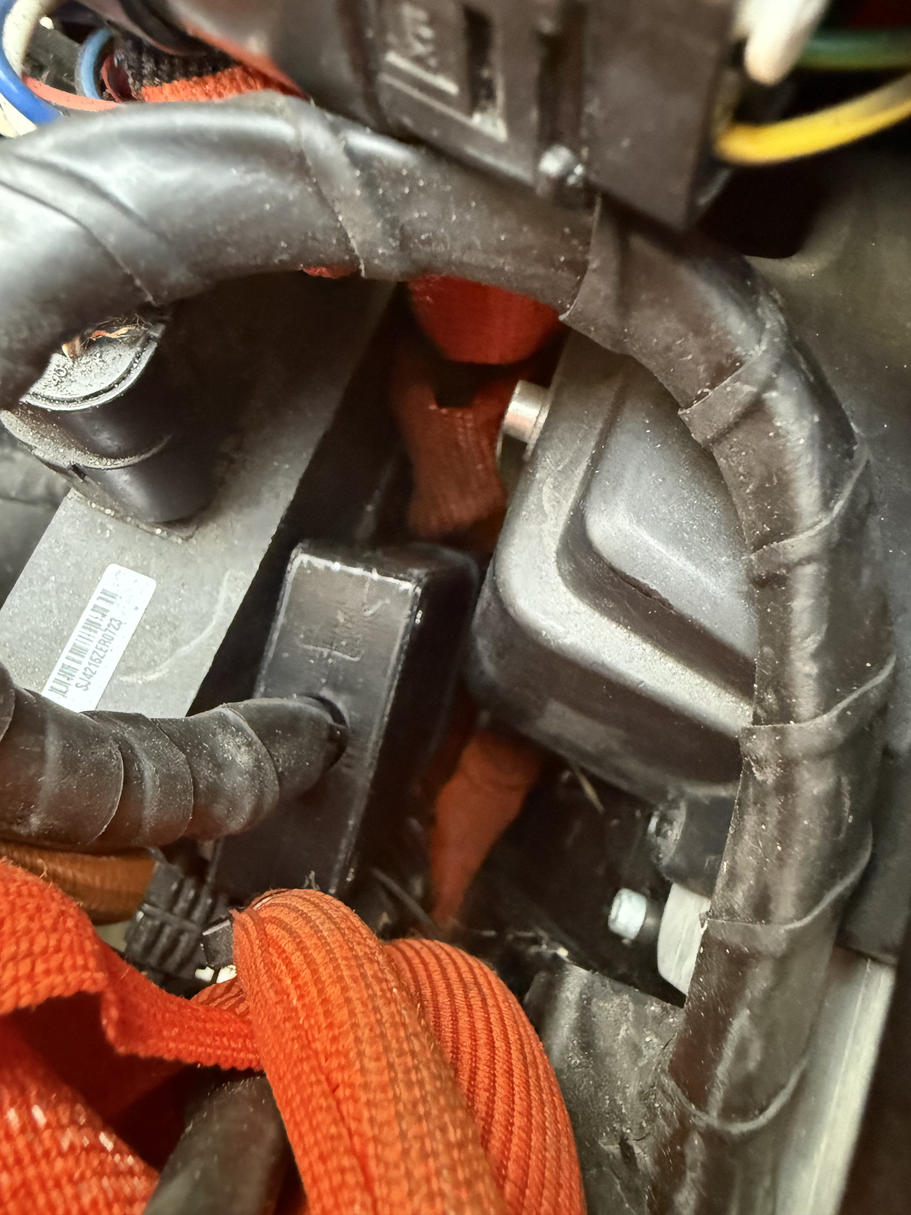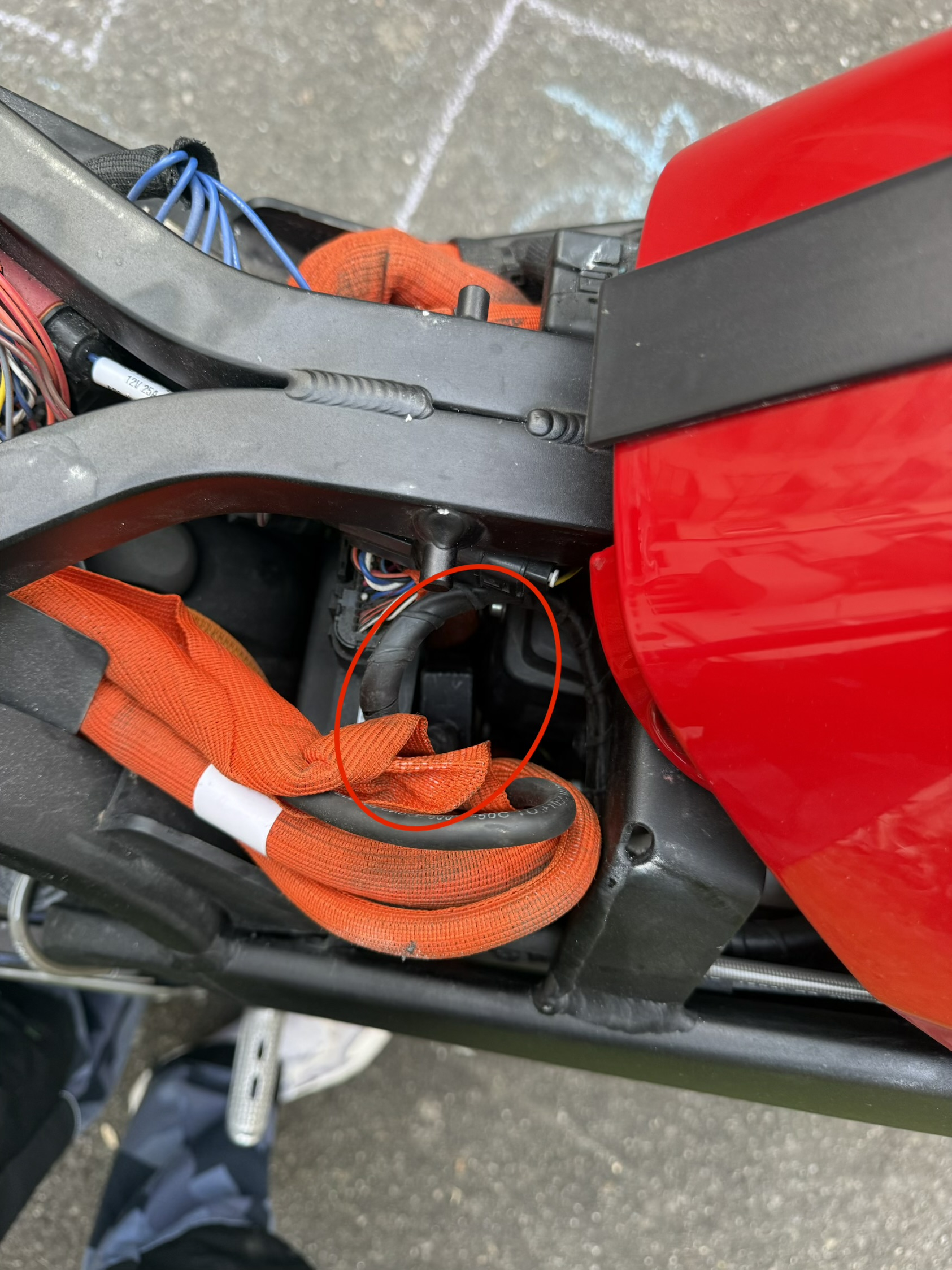 ich habe jetzt eine saubere Lösung für den Anderson-Stecker gefunden. Anstatt ihn aussen am Bike zu lassen, habe ich den Stecker unter den Sitz verlegt. Dort ist er deutlich besser geschützt.