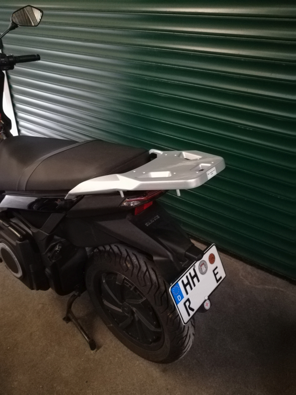 Silence S01 in weiß seit 21.08.2020, Snr. 1717 (Sevcon), Lenkkopflager bei 5000 km, Astramodul bei 6500 km getauscht (Garantie). Dzt. 11000 km. SHAD Gepäckträger mit Alutec 48 L Box.
