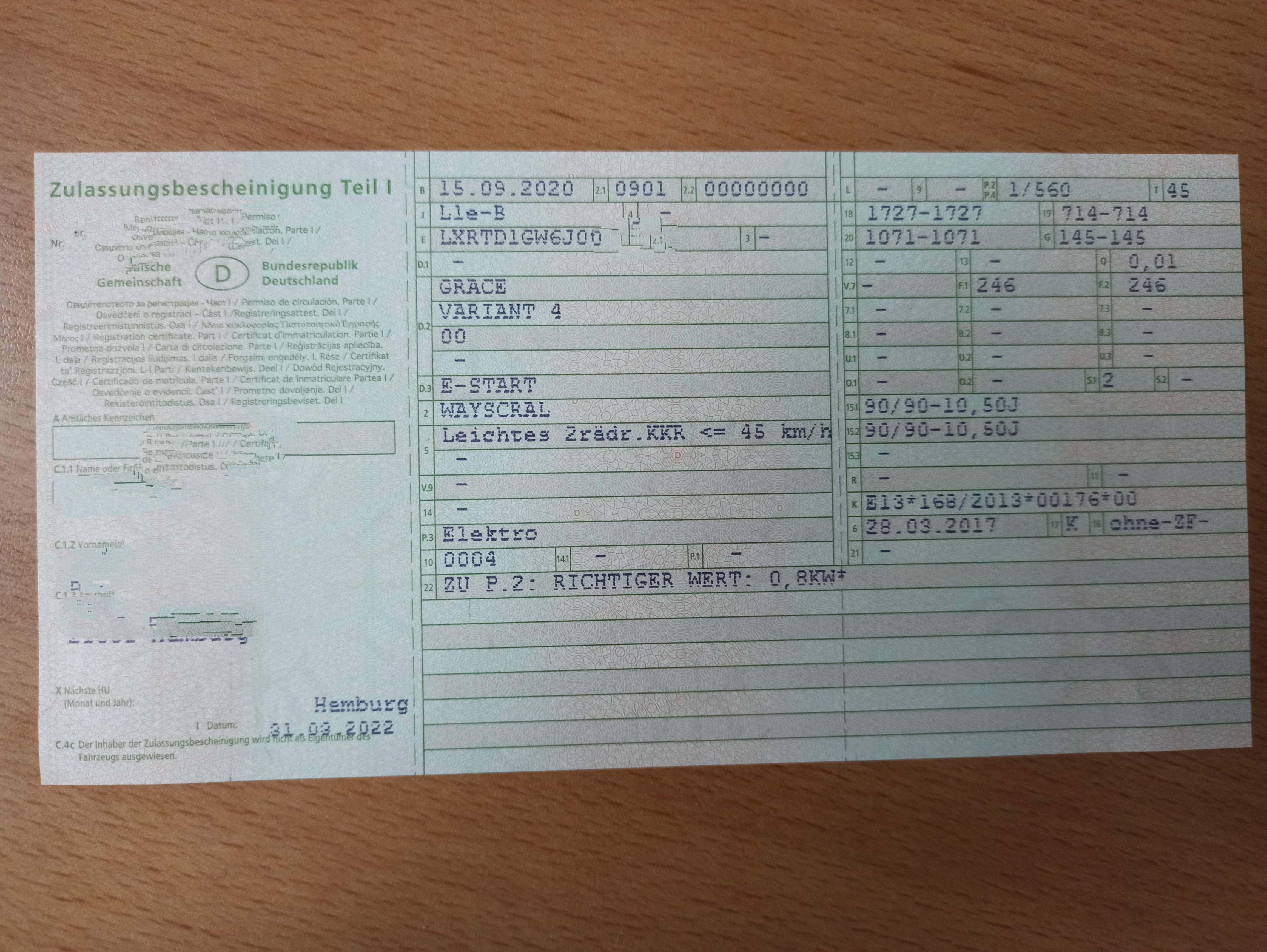 Den Paragrafen hatte ich zwar auch dabei, aber nur ein Bild von einem Fahrzeugschein von 2018,