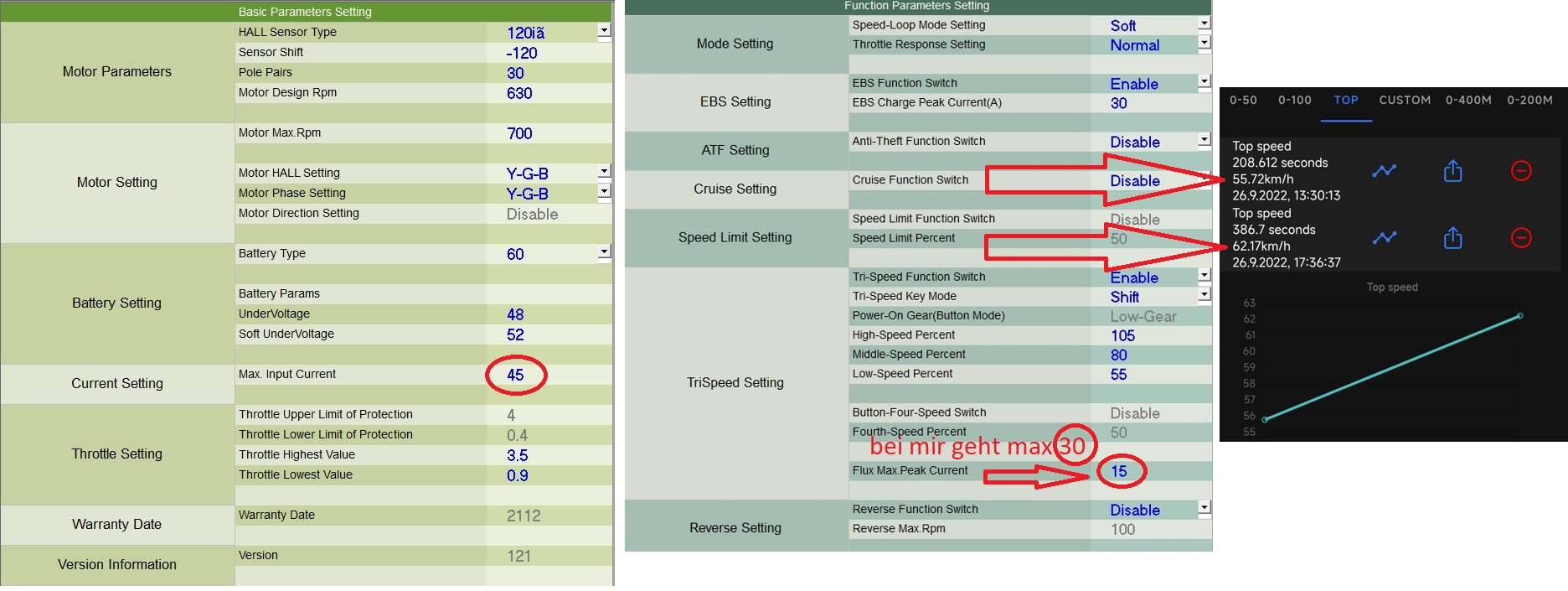 Schnabelwesen hat geschrieben: Do 6. Okt 2022, 00:12 Auf den neuen Controller bin ich gespannt. In die selbe Richtung denke ich auch. Allerdings ist es mir nicht gelungen, meinen 45A-Controller so einzustellen, dass der Roller im 3. Gang 60 km/h läuft....