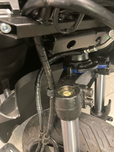 Da alles abgebaut war, habe ich gleich das Lenkungslager überprüft und gewisse Kabel besser verstaut mittels Kabelbinder und gewisse Leitungen ummantelt, dadurch habe keine schabende Geräusche beim lenken mehr.