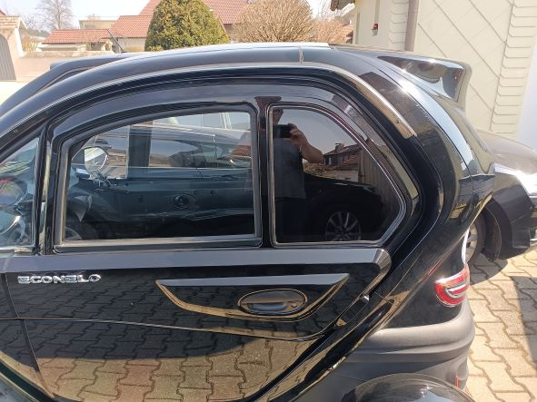 Am Wochenende habe ich mit der übrigen Folie noch die hinteren Fenster dunkel foliert.