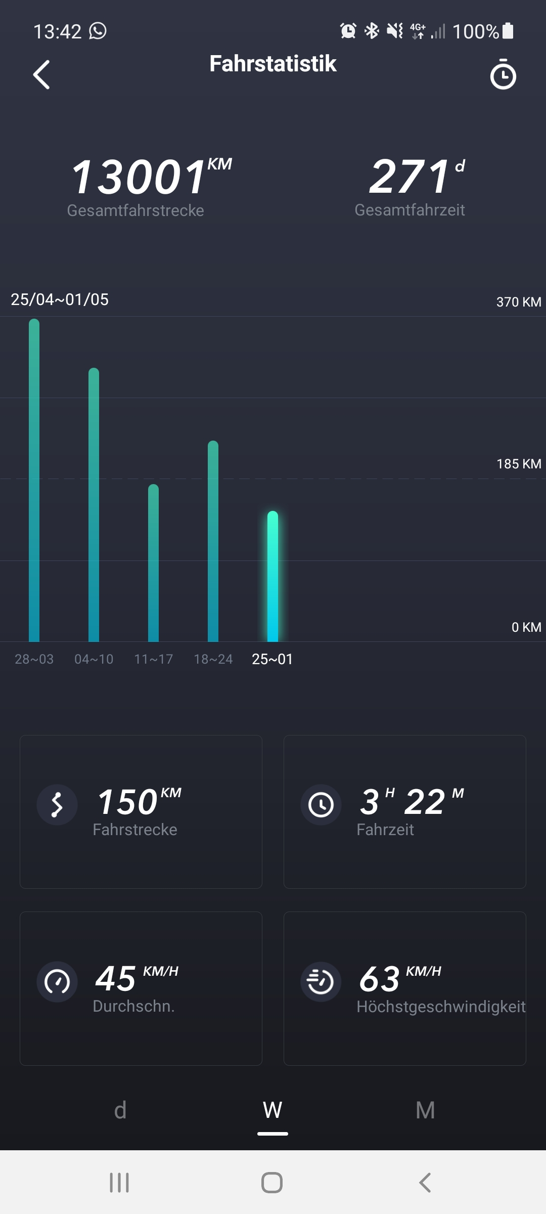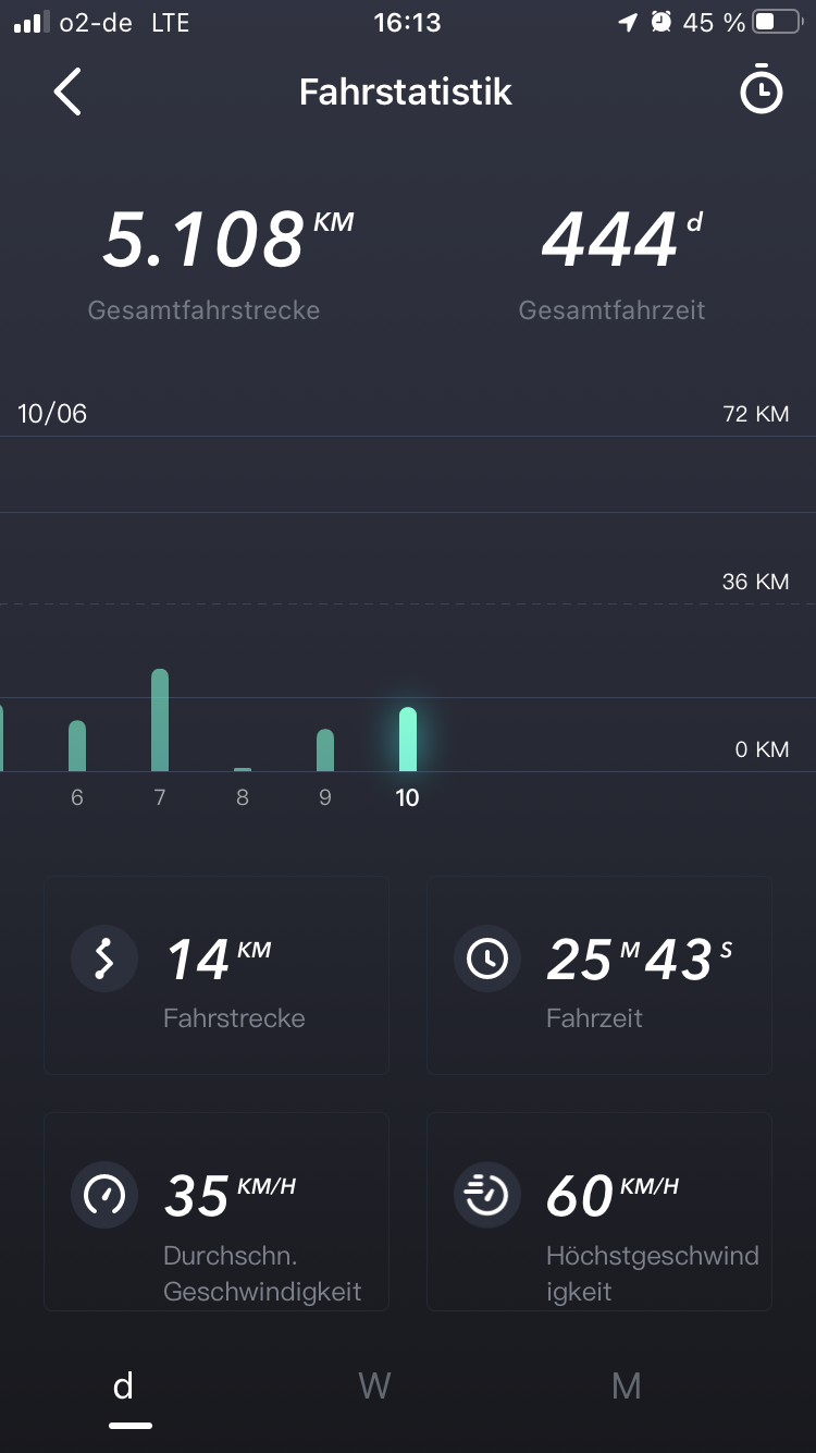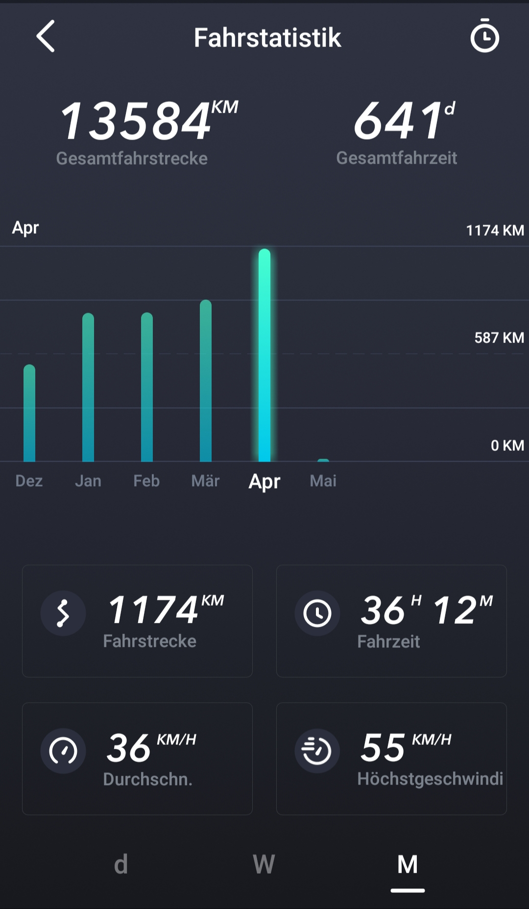 Letzten Monat sind sehr viele Km druff gekommen. Jetzt reichts erst mal. Mein E-Fahrrad (Pegasus Strong ) ist vom 10.2021 und hat noch nicht mal 1.000 km auf dem Tacho. Das muss ich jetzt mal abändern. Und deshalb bleibt der Roller sehr oft stehen. Sonst ist es bei dieser Laufleistung von ca. 1150 km pro Monat auf das Jahr gerechnet nach 6 Jahren Schrott.