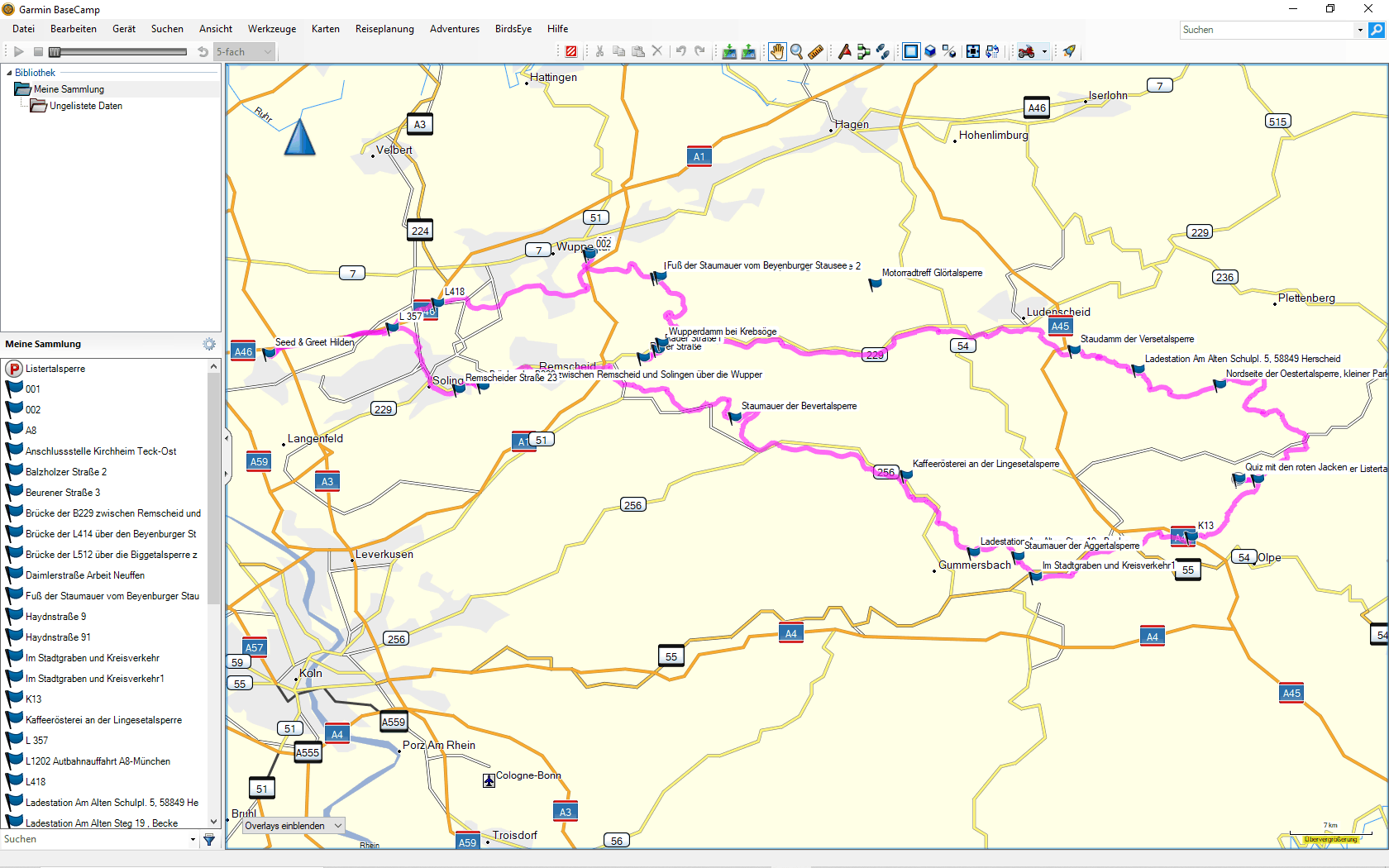 Es gibt eine Software namens Garmin Base Camp, in der ich dann bis zur Version 4 meine Runde programmieren konnte und ans Navi übertragen:
