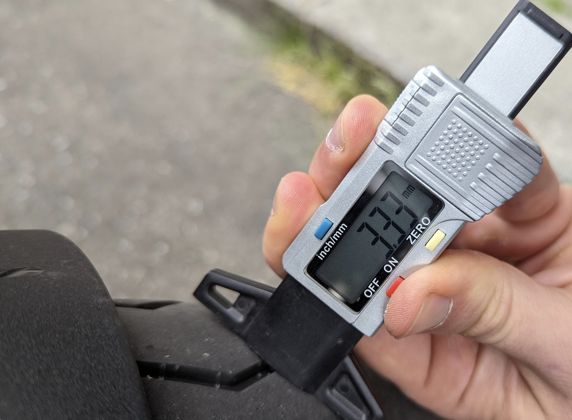 Würdest du bitte vom vorderen Reifen mal die Tiefe des Profils messen ?