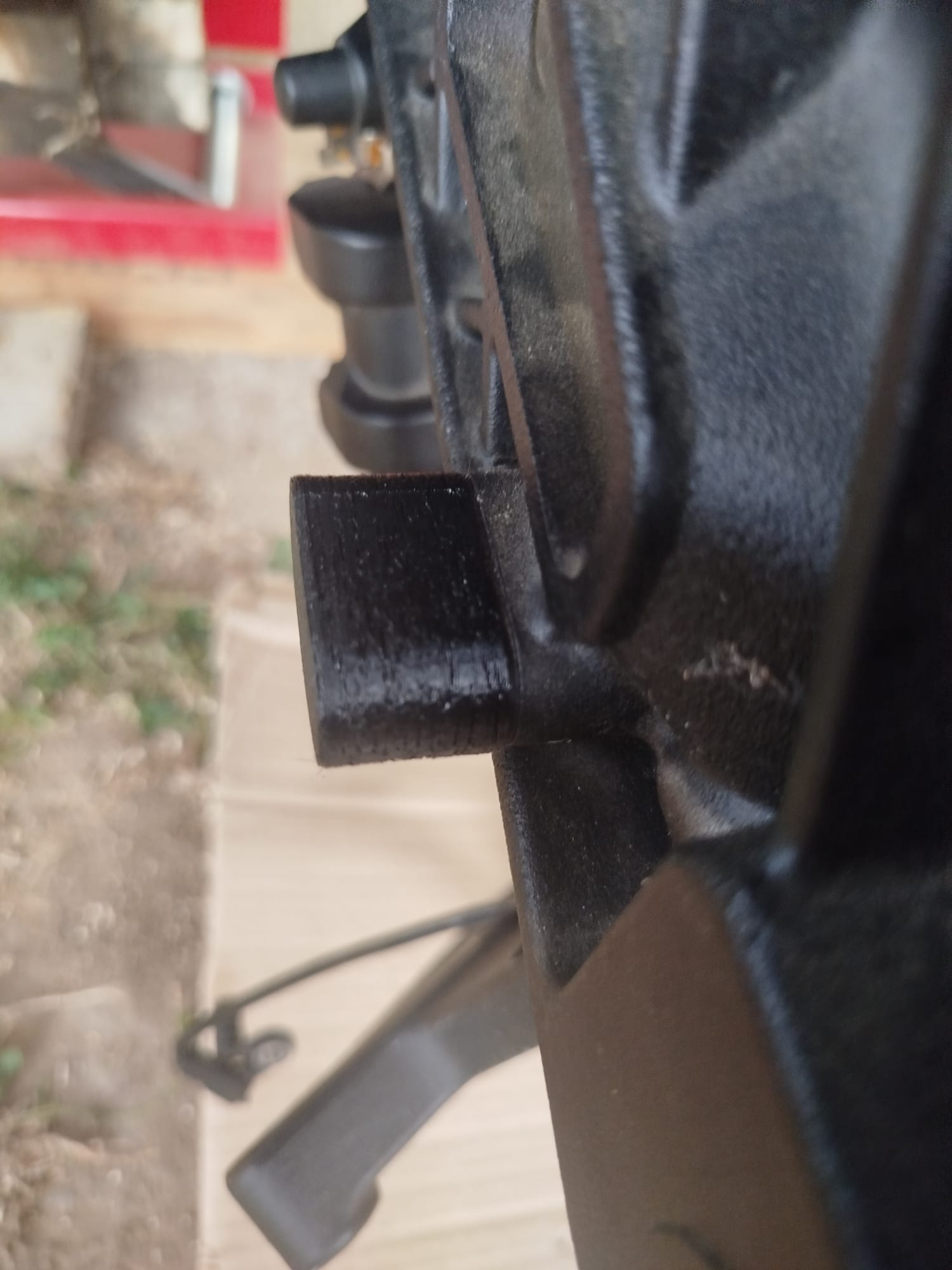 Ich hatte immer beim Lastwechsel (beim bremsen hinten) ein schlagendes Geräusch am Hinterrad. Das Problem ist das Zwischenstück an dem die Bremszange befestigt wird. Die Aussparung und der Gegenhalter haben Spiel. Abhilfe schafft hier ein gedruckter Überzieher aus TPU.