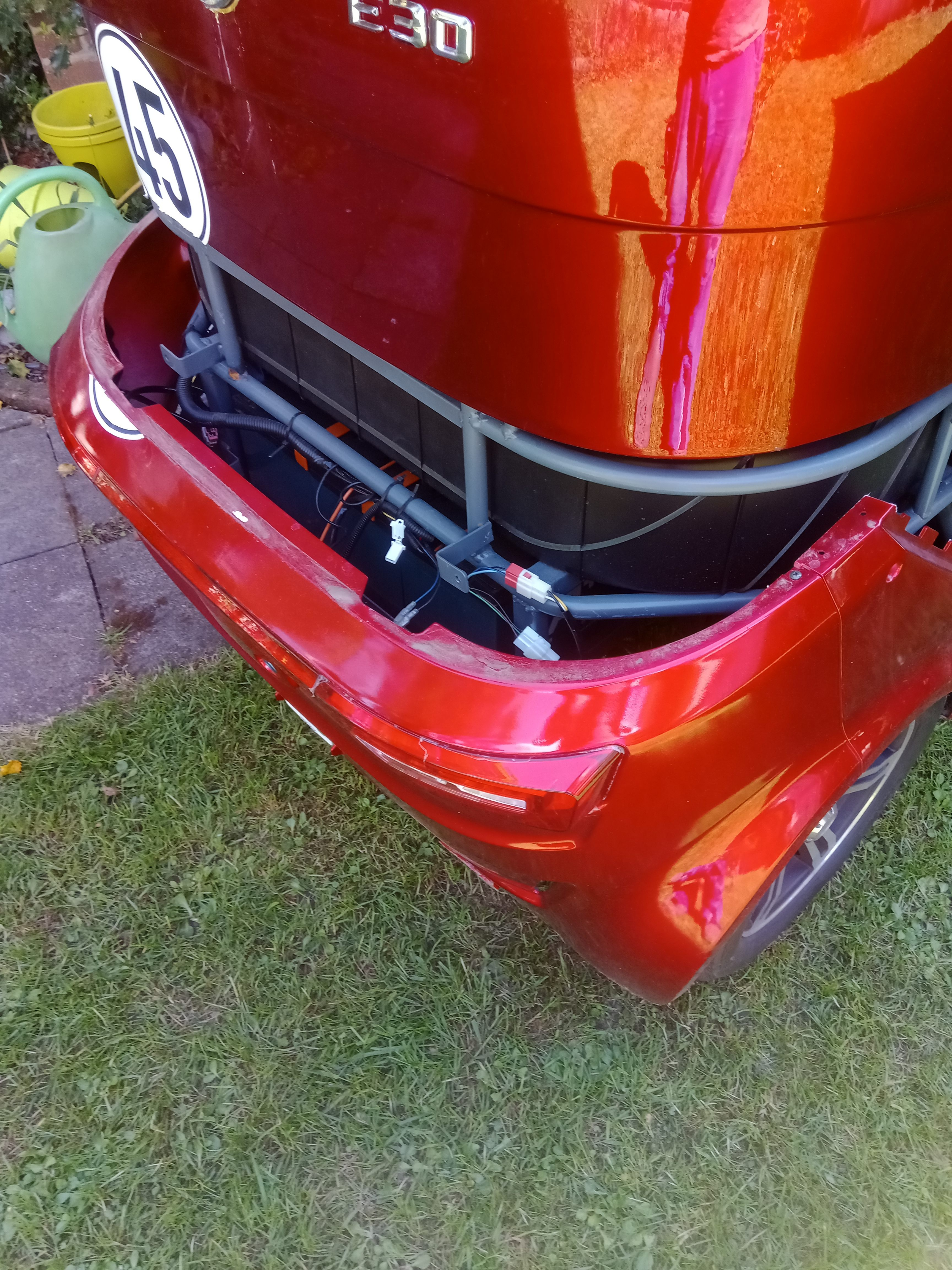 Nie wieder vergessen,das noch was hinter mir ist :D ! Der Rückpiepser funktioniert wirklich ziemlich genau ...wenn die 4 Sensoren richtig im Winkel eingestellt sind.Ich habe zum Einbau das komplette untere Achterdeck abgelassen,es sind 10 Kreuzschrauben zu lösen.Das geht recht fix.Nötig für den Einbau war es jetzt nicht unbedingt Aber ich habe so noch ein freies Kabel (blau + schwarz )gefunden,das nur bei R Stellung die 12 V liefert.