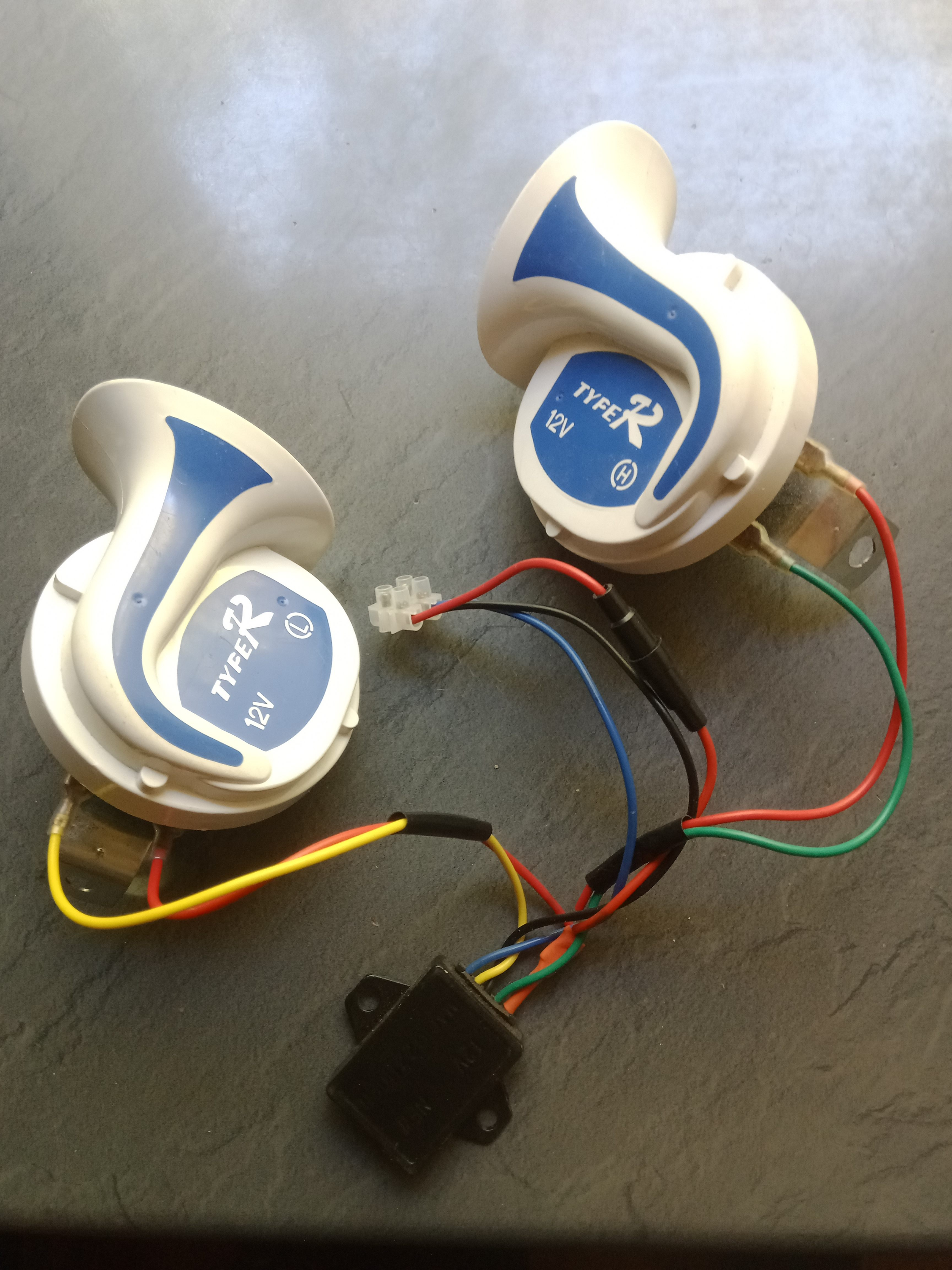 ...und dann hab ich im Fundus noch eine 2 Horn Fanfare gefunden.Die hatte mal 31 Melodien drauf.Mein Fehler...jetzt nur noch eine,aber die reicht.Wie italienischer Strassenräumer,satte 118 dB !