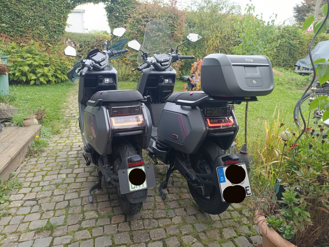 Da sowohl der NQiX500 mit TopCase, wie auch ein NQiX150 ohne Anbauteile hier steht, habe ich beide mal nebeneinander gestellt.