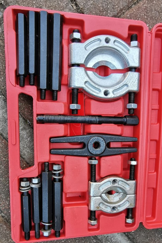 Don't know if a real bearing removal kit is required to push the axle down the bearing, maybe a "normal" 3-legged puller will do the job as well.