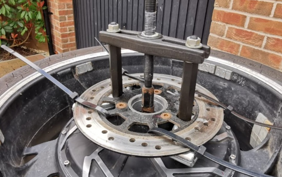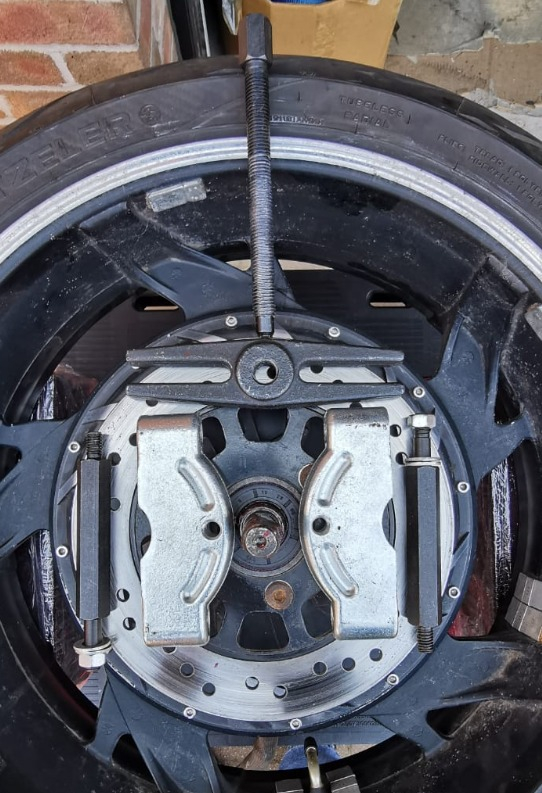 So wie ich das verstanden habe drückst Du ja letztendlich von unten gegen die montierte Bremsscheibe.