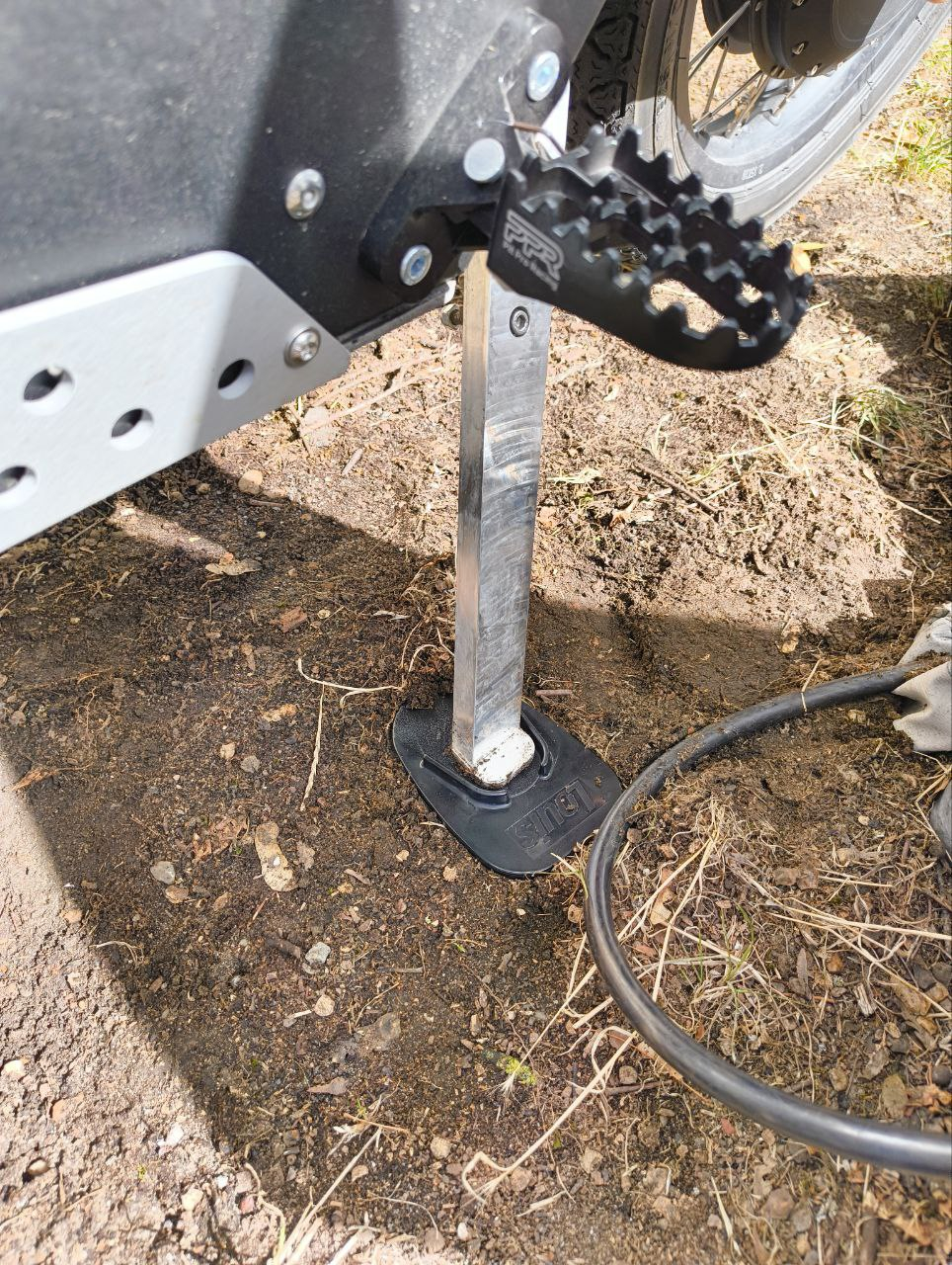 Da die Wildfire auf weichen Böden umkippgefährdet ist, habe ich mich bei meinen lokalen Motorradzubehörhändler mal umgesehen, und voilà! Es werde Kleinkram: