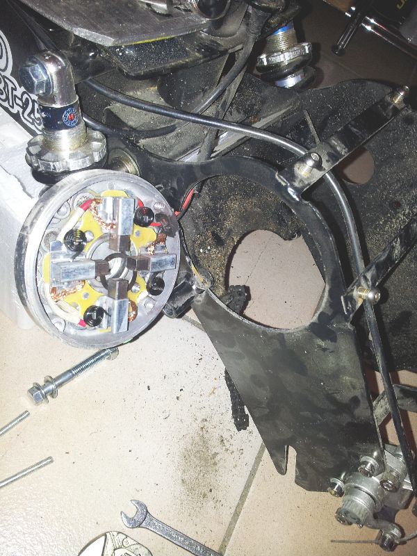 habe mich heute mal drüber gemacht um das problem mit dem fehlenden freilauf mal zu lösen. aktuell habe ich mal die hinterachse zerlegt und den motor demontiert. die ausgehende welle des motors hat 12mm durchmesser was mir schon erste probleme bereitet.
